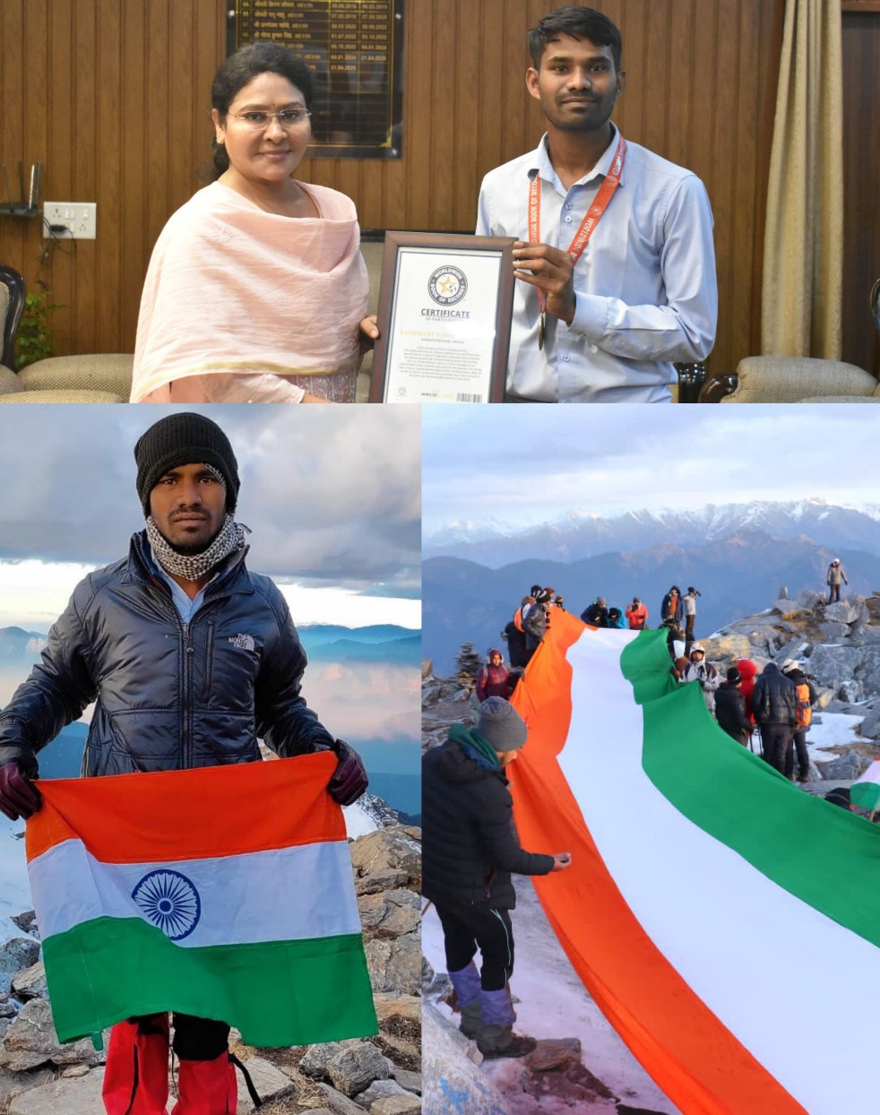 तीन साल पहले माइनस 16 डिग्री में 12500 फीट में चढ़ाई कर 30 लोगों की टीम के साथ यशवंत ने लहराया था तिरंगा, अब वर्ल्ड वाइड बुक ऑफ रिकॉर्ड में नाम हुआ दर्ज, मिला प्रमाण पत्र, कलेक्टर ने भी किया सम्मानित