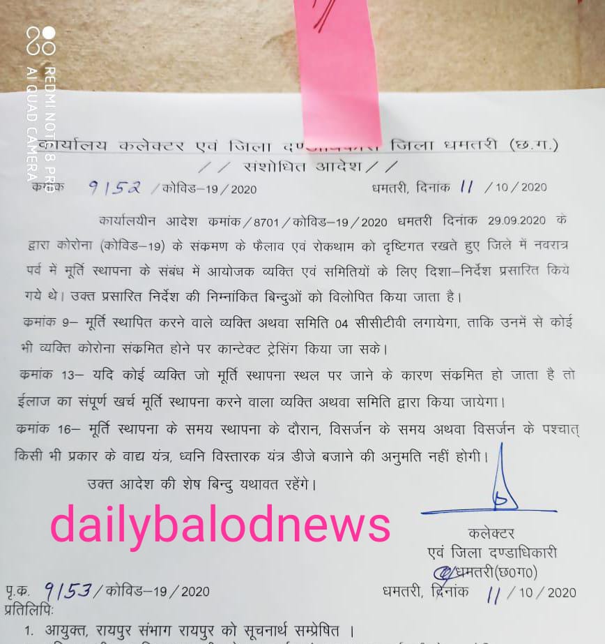 बालोद/धमतरी। कोरोना काल में दुर्गा उत्सव को लेकर कई तरह की सावधानी से संबंधित शासन प्रशासन द्वारा हर जिले में आदेश जारी किया गया है। इस आदेश का पालन करेंगे तो स्थापना मुश्किल हो सकती है। क्योंकि कई ऐसे नियम बनाए गए हैं जिसका पालन दुर्गा उत्सव समिति के लिए कर पाना मुमकिन नहीं होगा। खासतौर से कैमरा लगवाना और अगर कोई कोरोना का शिकार हुआ तो उसके इलाज का खर्च समिति द्वारा उठाना। इन सब नियमों के चलते भक्त दुर्गा स्थापना से पीछे हट रहे हैं तो वही धमतरी में श्री राम हिंदू संगठन द्वारा इसका विरोध भी शुरू हो चुका है। जिसके चलते एक दिन पहले वहां जमकर प्रदर्शन भी हुआ। कई साथी को पुलिस ने गिरफ्तार भी किया। फिर मुचलके पर रिहा भी किया। हिंदू संगठन के विरोध के बाद यहां के कलेक्टर ने आदेश जो जारी किया था उसमें कुछ नियमों को विलोपित कर दिया है। जिसके बाद अब वहां यानी कि पूरे धमतरी जिले में दुर्गा स्थापना का रास्ता साफ हो गया है। नए आदेश में एक विलोपन आदेश जारी करके धमतरी कलेक्टर ने कहा है कि अब कैमरा नहीं लगाएंगे तो भी चलेगा। इस आदेश के बाद से अब दुर्गा उत्सव आसानी से हो सकेगा। अन्य जिले में भी इस संबंध में मांग उठ रही है। बालोद जिले में भी मूर्तिकार चित्रकार संघ ने कलेक्टर के नाम से ज्ञापन सौपा है। इन्हीं नियमों का विरोध करते हुए कहा गया है कि इस नियम के चलते समितियों ने मूर्ति का आर्डर निरस्त कर दिया। जिससे हमें काफी कुछ नुकसान हुआ है और मूर्तियां नहीं बिक पा रही है। मूर्तियों को साल भर कहां रखेंगे इसके लिए सुरक्षित जगह दिलाने की मांग संघ द्वारा की गई है तो ही आदेश में संशोधन की भी मांग की गई है लेकिन अभी तक स्थानीय प्रशासन द्वारा इस संबंध में बालोद जिले में कोई निर्णय नहीं लिया गया है तो वहीं अन्य जिलों में भी धीरे-धीरे इस पर मांग उठने लगी है। वहीं ग्रामीण क्षेत्रों में आदेश के चलते कई जगह दुर्गा स्थापना ना हो पाने की स्थिति भी बन रही है लेकिन अगर प्रशासन से आदेश हो जाए तो फिर आस्था को मजबूती मिलेगी या फिर इस नवरात्रि भक्तों में निराशा भी देखने को मिल सकती है। अब फैसला प्रशासन के संशोधन आदेश पर टिका हुआ है।