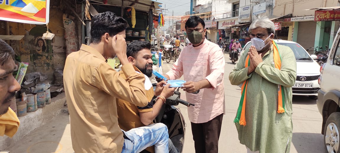 भारतीय जनता पार्टी शहर मंडल के कार्यकर्ताओं ने शहर के सदर बाजार में जाकर शहर में घूम रहे बिना मास्क के लोगों को रोक रोक कर समझाइश देते हुए उन्हें मास्क का वितरण किया और उन्हें हमेशा मास्क पहनने की समझाइश दी। शहर में इस कार्य की लोगों ने काफी प्रशंसा की।