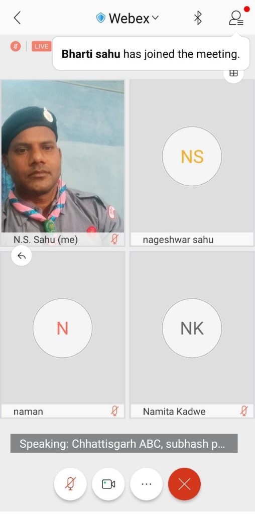 इस वर्चुअल मीटिंग में प्रमुख रूप भारत स्काउट गाइड जिला संघ के अध्यक्ष सुभाष पुसतकर, डीओसी गाइड धनेश्वरी सोनवानी,सहायक डीओसी गाइड प्रेमलता चंद्राकर,मिलन सिंहाकोषध्यक्ष व जिला संघ के समस्त पदाधिकारी साथ ही बालोद संयुक्त सचिव गायत्री साहू,डौन्डी लोहारा संयुक्त सचिव नोम साहू,स्थानीय संघ डौंडी से संयुक्त सचिव तनुजा बंजारे,हेमंत धनगुन,गौतम कुमार ,अन्नपूर्णा ध्रुव,सुरैया तबस्सुम,योगेश्वरी भुआर्य गायत्री देवांगन,मिथिला सिंघारे,सरिता उइके,चंद्रकला पटेल,हर्षा देवांगन चिंतापूर्णी,वीणा, नेमसिंह साहू ब्लॉक सचिव स्काउट गाइड विकासखंड डौंडी व अन्य स्काउटर और गाइडर ने हिस्सा लिया ।