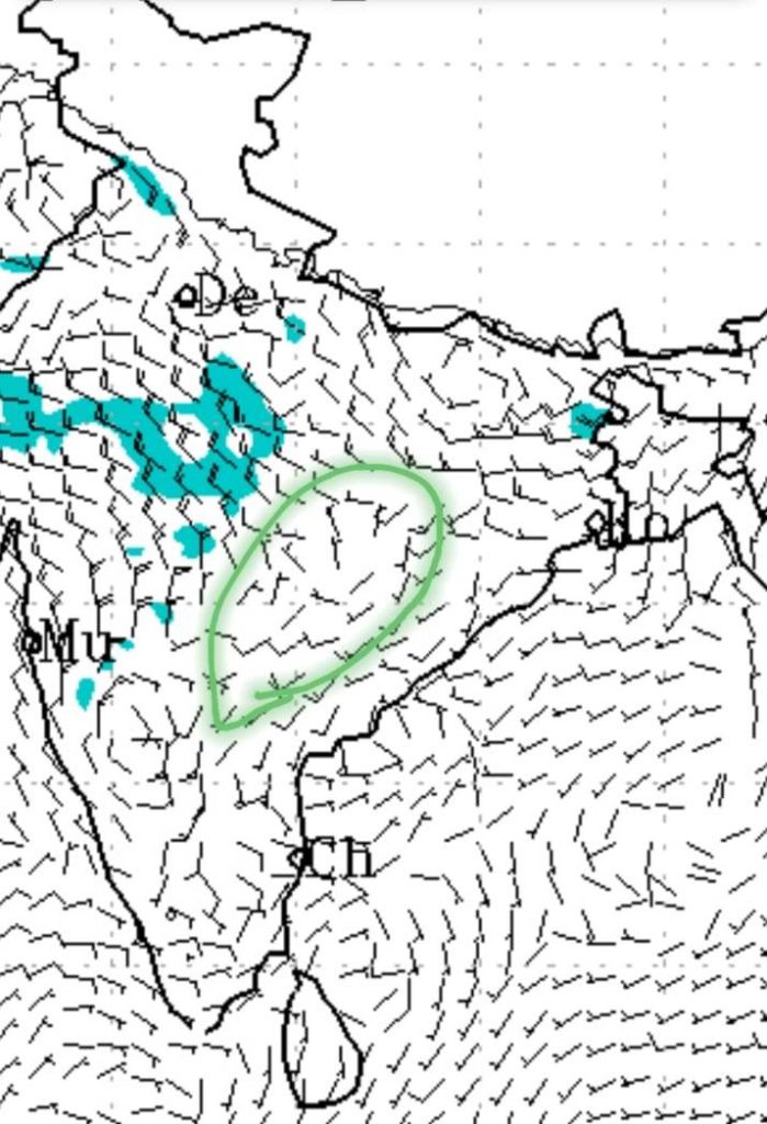शेडेड क्षेत्र के उत्तरी भाग में एक-दो स्थानों पर हल्की वर्षा होने अथवा गरज चमक के साथ छींटे पड़ने की संभावना है। प्रदेश के दक्षिण भाग में भौगोलिक कारणों से गरज चमक के साथ छींटे पड़ने की संभावना है।