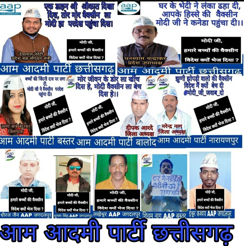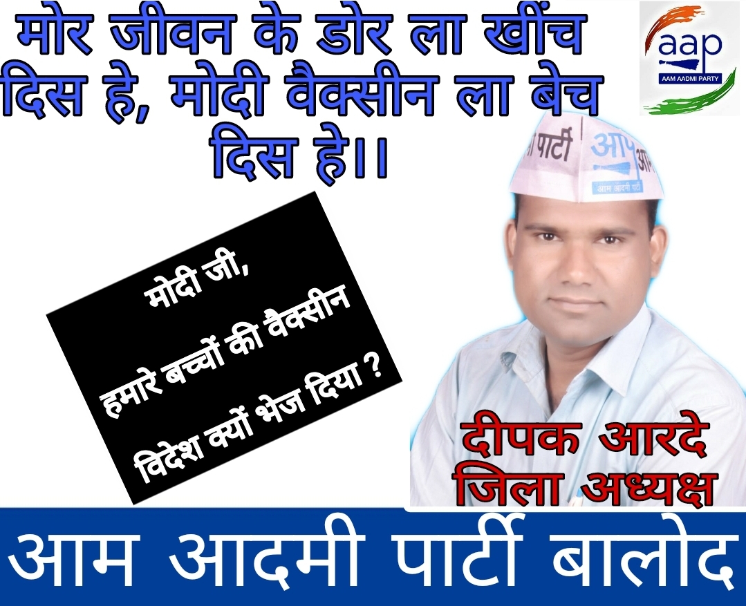 सँसार के हर देश जो वैक्सीन का निर्माण कर रहे हैं अपने देश की जरूरतों को पूरा करने के बाद निर्यात कर रहे हैं पर हमारे प्रधानमंत्री नरेंद्र मोदी जी ने महज विश्व बिरादरी के बीच अपना चेहरा चमकाने के चक्कर में जानते बूझते हुए भी हमारे बच्चों के हिस्से की वैक्सीन का निर्यात कर दिया जो बेहद दुर्भाग्यपूर्ण है।आज जब देश की जनता मात्र तीन महीनों में अपने लाखों परिजनों/इष्टमित्रों को खो चुकि है,आम आदमी पार्टी केंद्र सरकार के इस कृत्य की घोर निंदा करती है।आज पार्टी द्वारा सोशल मीडिया के माध्यम से वर्चुअल विरोध प्रदर्शन किया गया और केंद्र सरकार से माँग की गई कि हमारे बच्चों को केंद्र सरकार तत्काल वैक्सीन उपलब्ध कराए।