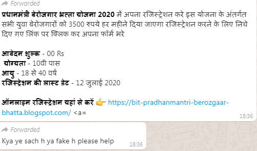बेरोजगारी भत्ता के नाम से आपको भी आया है मैसेज तो पढ़ लीजिये उसकी सच्चाई?