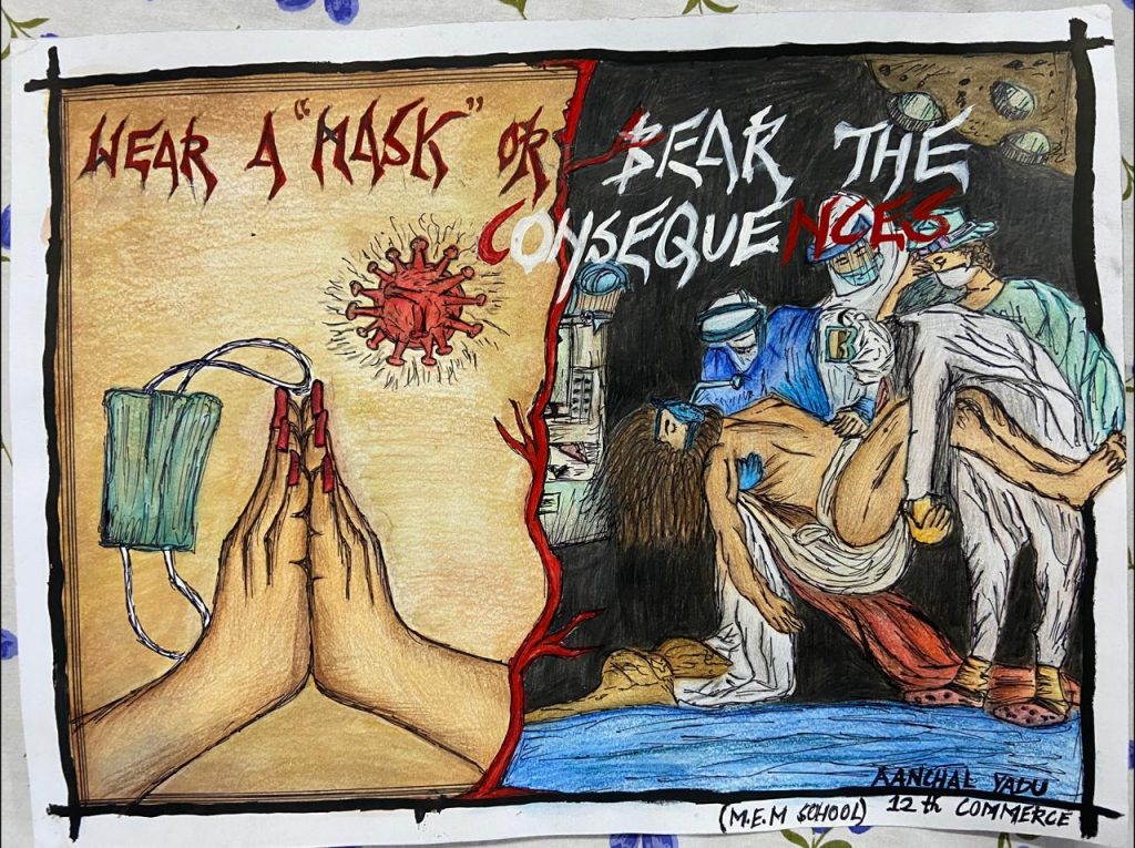 बालोद।अरिहन्त अकैडमी एवं महावीर कोविड केयर बालोद के संयुक्त तत्वाधान में कोरोना जागरूकता अभियान के तहत आयोजित पोस्टर एवं कार्ड बनाओ प्रतियोगिता में संपूर्ण ज़िले से 130 बच्चों ने भाग लिया। तीसरी लहर के क़हर से बचना है तो शालेय छात्रों में जागृति लाना आवश्यक है, इस सोच के साथ आयोजित इस प्रतियोगिता में बच्चों ने बड़ चड कर हिस्सा लिया। तीन ग्रुप में आयोजित पोस्टर बनाओ में जूनीयर वर्ग में प्रथम कृष्णा किंडर स्कूल से प्रियांशि बाफ़ना, द्वितीय समीक्षा जैन एवं तृतीय आरव सिंह अरिहंत अकैडमी ने प्राप्त किया।मध्यम ग्रुप में प्रथम रूमीजैन, द्वितीय तेजस्वी साहू एवं तृतीय दीक्षा जैन रही, जबकि सिनीयर वर्ग में महावीर इंग्लिश मी स्कूल की आँचल यादव प्रथम, द्वितीय तनीषा जैन सन्त कबीर स्कूल एवं मोनिका टावरी व चारु कश्यप ने संयुक्त रूप से तृतीय स्थान प्राप्त किया। इसी तरह कार्ड बनाओ प्रतियोगिता में जूनीयर वर्ग में प्रथम कृतिका टावरी, द्वितीय यशी बाफ़ना एवं आरव सिंग तृतीय स्थान पर रहे। मध्यम ग्रुप में दुष्यन्त यादव प्रथम,नितल टावरी द्वितीय व आन्या यादव एवं आशथा मनिहार तृतीय स्थान पर रहे। वरिष्ठ ग्रुप में महावीर स्कूल के स्तुति जैन प्रथम,क्षिप्रा सोनबरसा द्वितीय एवं संत कबीर स्कूल की लोकेश्वरी भुआर्या तृतीय स्थान पर रही। भाग लेने वाले सभी प्रतिभागीयो को प्रमाण पत्र दिये गये। विजेताओं को कार्यक्रम प्रभारी डॉ सानिध्य सुराना, मोहन नाहटा एवं प्राचार्य भुपेंद्र पाण्डे ने बधाई दी। उपरोक्त जानकारी संयोजक डॉ प्रदीप जैन ने दी।