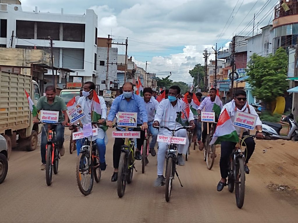 देश में लगातार बढ़ती हुई महंगाई पेट्रोल डीजल के दाम में हो रही भयंकर वृद्धि रासायनिक खादों एवं खाद्य पदार्थों के मूल्यों की बेलगाम वृद्धि के खिलाफ में छत्तीसगढ़ प्रदेश कांग्रेस कमेटी के निर्देश पर जिला कांग्रेस कमेटी बालोद के द्वारा साइकिल रैली का आयोजन किया गया। कांग्रेस भवन से साइकिल रैली निकाली गई एवं बालोद भ्रमण किया गया।