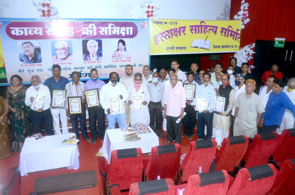 इस समीक्षा गोष्ठी के मुख्य अतिथि शासकीय महाविद्यालय कांकेर से आए डॉ एस आर बंजारे थे। अध्यक्षता लोक असर के संस्थापक दरवेश आनंद ने की। विशेष अतिथि के रूप में नगर पालिका दल्ली राजहरा के अध्यक्ष शिरोमणि माथुर, कवि व साहित्यकार डॉ अशोक आकाश साहू सहित अन्य प्रमुख मौजूद रहे। ज्ञात हो कि 4 फरवरी 2021 को उक्त पुस्तक का विमोचन किया गया था। समीक्षा गोष्ठी का आयोजन माथुर परिवार व हस्ताक्षर साहित्य समिति के तत्वाधान में हुआ।