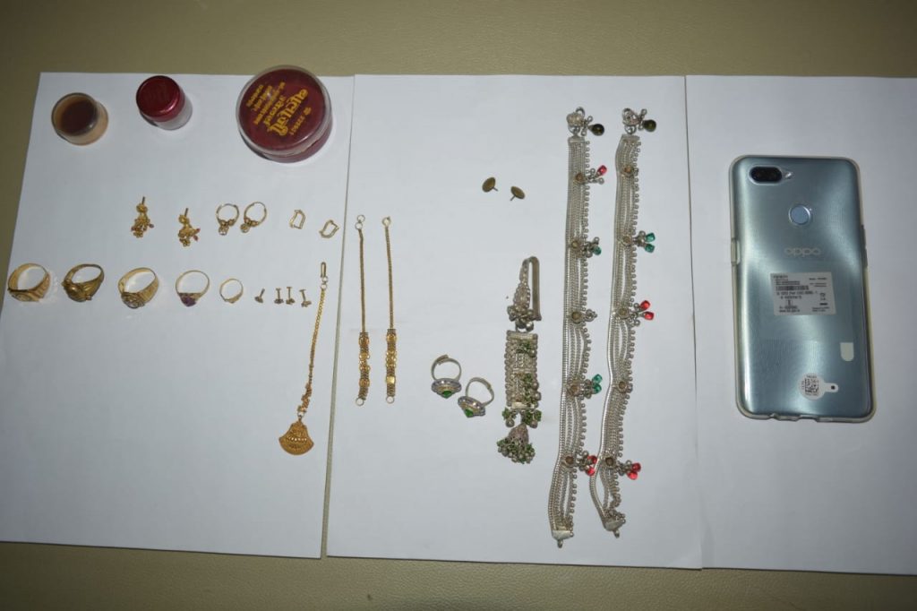 आरोपी के कब्जे से सोने ,चांदी के जेवरात एवं 01 एक विवो मोबाईल हैण्डसेट बरामद किया गया