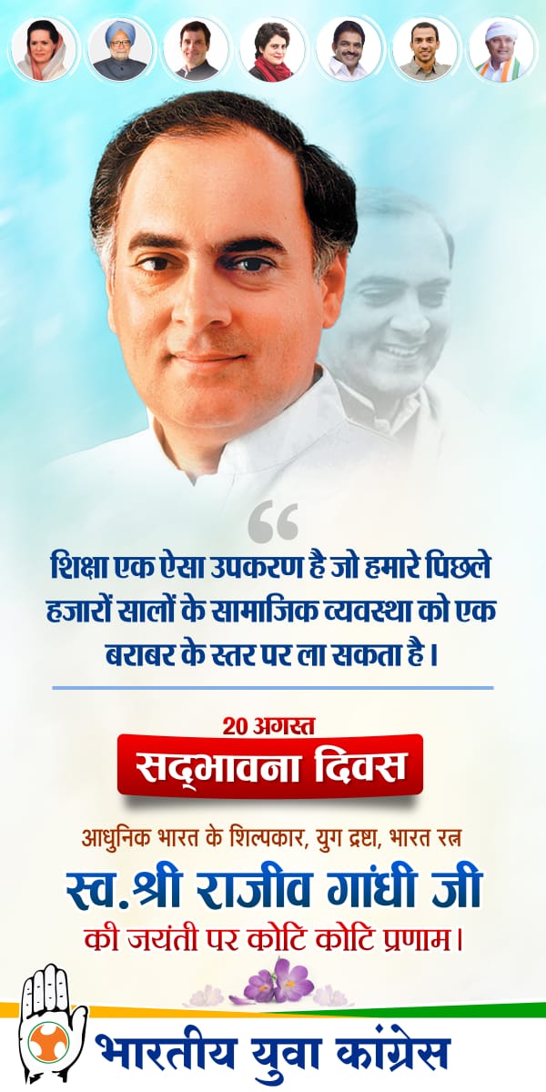 डौंडी ब्लॉक अध्यक्ष गजेंद्र ठाकुर , महासचिव चंदन ग्वाल व राहुल कड़पति व टीम द्वारा मास्क व सैनिटाइजर वितरण किया जाएगा। डौंडी शहर अध्यक्ष शुभम गावड़े , जिला प्रशासनिक महासचिव रविकांत देशमुख व शोएब खान द्वारा ज़रूरतमन्द बच्चों के बीच पहुंच कर किताब एवम पेन वितरण किया जाएगा।अर्जुन्दा ब्लॉक अध्यक्ष अनुभव शर्मा व टीम के द्वारा अस्पताल में फल वितरण किया जाएगा।लोहारा में ब्लॉक अध्यक्ष राजेंद्र निषाद व महासचिव कमलेश सिंह टांक व टीम द्वारा वृक्षारोपण किया जाएगा। इन विभिन्न आयोजनों के द्वारा बालोद जिला युवा कांग्रेस द्वारा स्व राजीव गांधी की जयंती मना कर उन्हें याद किया जाएगा। उक्त जानकारी परितोष हंसपाल प्रभारी युवा कांग्रेस बालोद व आदित्य दुबे जिला प्रशासनिक महासचिव युवा कांग्रेस बालोद,रविकांत देशमुख प्रशासनिक महासचिव बालोद युवा कांग्रेस ने दी।
