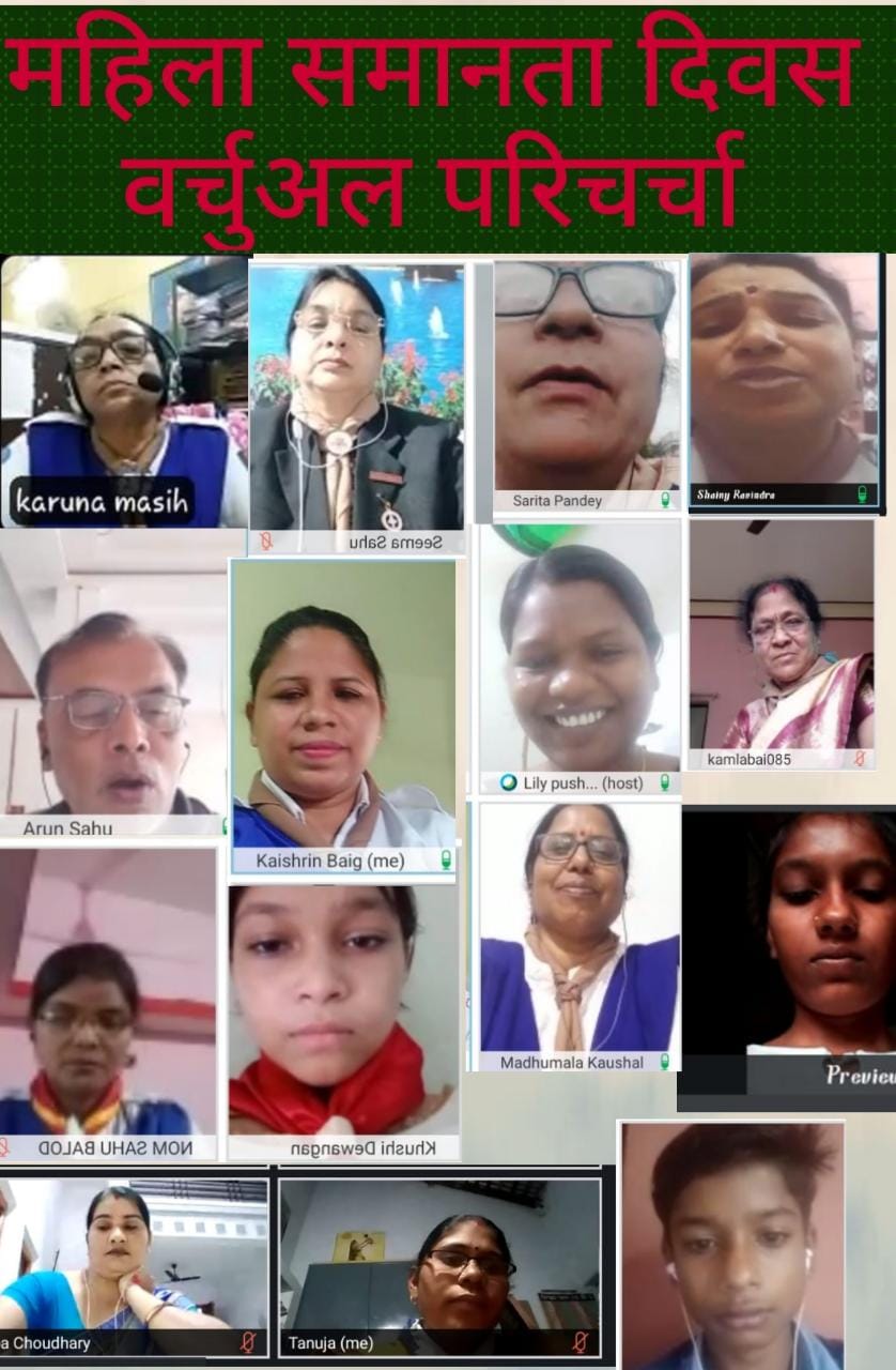 कार्यक्रम का संचालन एवम नेतृत्व श्रीमती कैशरीन बेग ए एल टी रेंजर लीडर ,भण्डेरा ने किया। आयोजन में अतिथियों ने इस बात पर चिंतन मनन किया कि 26 अगस्त को महिला समानता दिवस रहा।अंतरराष्ट्रीय स्तर पर इसे नहीं मनाया जाता लेकिन इसकी अहमियत है क्योंकि हम भारत की संविधान की बात करें उसे कानून के समक्ष समानता का अधिकार दिया गया है जो आर्टिकल 14 में है तो संविधान में लिखा है यह कानून है कि महिला और पुरुष एक समान है। समानता दिवस की शुरुआत अमेरिका में 26 अगस्त 1920 में महिला पुरुषों में समान मतदान करने का अधिकार से शुरू हुआ लेकिन यह लड़ाई हर देश में लड़ी जा रही है। जब अमेरिका के महिलाओं की यही स्थिति है तो बाकी देश के बारे में तो आप समझ सकते हैं क्या स्थिति होगी। अभी वर्तमान में कल की बात करे तो महिलाएं बालिका सभी प्रकार की भूमिका निभाती हैं हमें महिला समानता दिवस मनाने की आवश्यकता है। महिलाओं को अपने अधिकार के लिए स्वयं आगे आना होगा। पहले खुद से लड़ना होगा तभी वह अपने अधिकार को पा सकती हैं। हर क्षेत्र में महिलाएं आगे हैं और इसी तरह से महिलाएं जो है एक साथ जुट कर एक दूसरे से सहयोग कर अगर अपने अधिकार के प्रति सजग होंगे। तो निश्चित ही वह दिन दूर नहीं होगा लेकिन उसके लिए एक बार अपने अधिकार अपने कानून आदि को जानना होगा। बारीकियों से समझना होगा तभी हमें जो समानता की बातें जो कर रहे हैं उसमें सफलता मिलेगी।