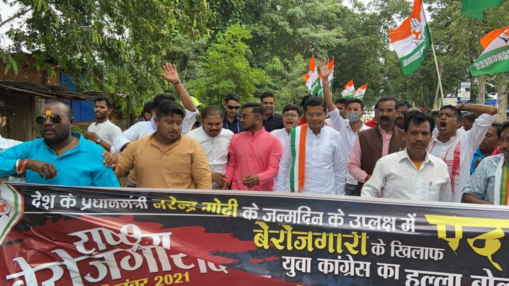बालोद। शुक्रवार को प्रधानमंत्री नरेंद्र मोदी के जन्मदिन को राष्ट्रीय बेरोजगारी दिवस के रूप में युवा कांग्रेस के जिला अध्यक्ष प्रशान्त बोकड़े के नेतृत्व में हल्ला बोल किया गया। पूरे देश मे बढ़ती बेरोजगारी और महंगाई को लेकर बालोद युवा कांग्रेस द्वारा पदयात्रा कर केंद्र में बैठी भाजपा की नरेंद्र मोदी सरकार के खिलाफ जमकर नारेबाजी करते हुए सैकड़ो युवा कांग्रेस कार्यकर्ताओ ने पदयात्रा कर विरोध दर्ज कराया। इस दौरान युवा कांग्रेस नेता प्रशान्त बोकड़े ने कहा कि “केंद्र में बैठी भाजपा की मोदी सरकार ने युवा से एक बड़ा वादा किया कि प्रतिवर्ष 2 करोड़ युवाओ को रोजगार दूंगा। परंतु केंद्र सरकार अपने वादे में पूरी तरफ विफल रही है। रोजगार देने की बात को छोड़िए इस कोरोनकाल मे केंद्र सरकार ने लाखों लोगों के रोजगार को ही छीन लिए। जिसके कारण देश में आर्थिक तंगी का माहौल पैदा हो गया। साथ ही पेट्रोल डीज़ल के बढ़ते दाम, युवाओ आम नागरिक व किसानों के पेट में लात मारने जैसा साबित हो रहा है।”केंद्र के इन्ही वादाखिलाफी के खिलाफ युवा कांग्रेस ने पदयात्रा किया एवं नरेंद्र मोदी के चुनावी वादा खिलाफी के लिये पद यात्रा निकाली गयी। जिसमे प्रमुख रूप से कांग्रेस कमेटी के प्रदेश अध्यक्ष मोहन मरकाम , संसदीय सचिव कुँवर निषाद , बालोद विधायक संगीता सिन्हा , पूर्व विधायक भैय्या राम सिन्हा , जिला कांग्रेस कमेटी अध्यक्ष चन्द्र प्रभा सुधाकर , युवा कांग्रेस के जिला अध्यक्ष प्रशान्त बोकड़े विशेष रूप से उपस्थित रहे।
