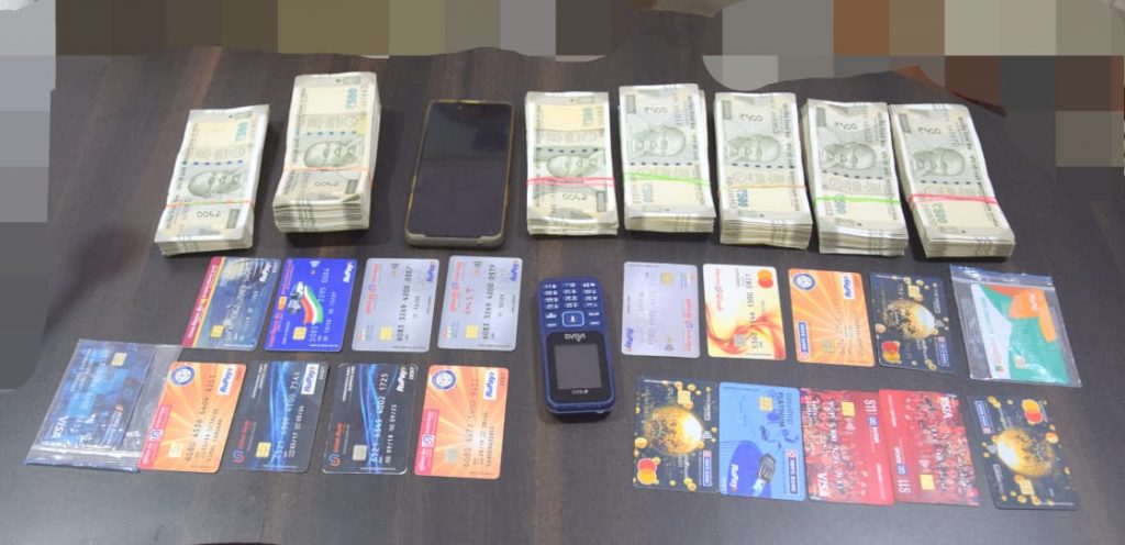 आरोपियो के कब्जे से विभिन्न बैंको के एटीएम कार्ड एवं नगदी रकम 3.90 लाख रूप्ये बरामद