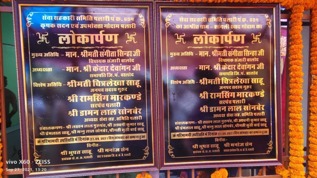 इस लोकार्पण कार्यक्रम में उनके साथ केदार देवांगन सभापति जिला पंचायत बालोद ल, जिला कांग्रेस कमेटी के उपाध्यक्ष बसंत सोनबेर , चित्रलेखा साहू जनपद सदस्य गुरुर, डामन लाल सोनबेर, अध्यक्ष सेवा सहकारी समिति पलारी, जनपद उपाध्यक्ष तोषण साहू ,साहू समाज के पूर्व अध्यक्ष टोमन लाल साहू, ब्लॉक कांग्रेस कमेटी गुरुर के सं.महामंत्री सुमित राजपूत, ब्लॉक सचिव यानेश साहू, पूर्व सरपंच पूर्णेस्वर साहू,सरपंच रामसिंग मार्कण्डेय, युवा कांग्रेस उपाध्यक्ष गिरजा साहू , चोवाराम, लखन लाल गुरूपंच,अश्वनी कुमार साहू, प्रेम लाल साहू, मन्नूलाल सुंदर, कुंती बाई साहू ,मुकेश साहू ,टेकलाल साहू,समस्त किसान जन कांग्रेस कार्यकर्ता गण समस्त पलारी ग्रामीण जन मौजूद रहे।