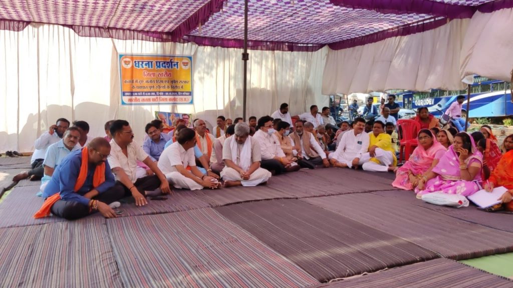 बालोद। भारतीय जनता पार्टी जिला बालोद द्वारा शनिवार को छत्तीसगढ़ के कवर्धा में हुए सांप्रदायिक मुठभेड़, उसके बाद पुलिस व प्रशासन द्वारा किए जा रहे पक्षपातपूर्ण कार्रवाई को लेकर बालोद शहर के जयस्तंभ चौक में धरना दिया। इस दौरान भाजपाइयों ने कांग्रेस सरकार पर जमकर निशाना साधा। भारतीय जनता पार्टी ने कहा कि पिछले 15 वर्षों में सौहार्दपूर्ण वातावरण में प्रत्येक पर्व मनाए जाते थे। परंतु जबसे कांग्रेस की सरकार सत्ता में आई है सांप्रदायिकता भंग हो गई है और इस तरह के मामले लगातार सामने आ रहे हैं। वही जिम्मेदार कैबिनेट मंत्री के क्षेत्र में ही वर्ग विशेष को महत्व देते हुए पक्षपातपूर्ण ढंग से कार्रवाई की जा रही है। भारतीय जनता पार्टी के जिला अध्यक्ष कृष्णकांत पवार ने धरना को संबोधित करते हुए कहा कि यहां की कांग्रेसी सरकार वर्ग विशेष के साथ पक्षपात पूर्ण ढंग से कार्रवाई करते हुए यह बता दिया है कि कांग्रेस यहां पर अलगाव की राजनीति कर रही है। हिंदू सनातन धर्म के भगवा ध्वज का यहां पर अपमान किया जाता है और जिम्मेदार यहां पर हाथ पर हाथ धरे बैठे हुए हैं और वर्ग विशेष के ऊपर कारवाई कर रहे हैं। जो कि गलत है। उन्होंने निशर्त हिंदू भाइयों को जेल से रिहा करने की मांग की है और कहा कि छत्तीसगढ़ में इससे पहले ऐसा कभी नहीं हुआ था परंतु बीते ढाई साल में सौहार्द पूर्ण वातावरण पूरी तरह बिगड़ गया है। कवर्धा की घटना देश को शर्मसार कर रखी है और यहां के मुख्यमंत्री भूपेश बघेल के मामले को सुलझाना छोड़ के उत्तर प्रदेश के मामले को उलझाने निकले हुए हैं। जो कि सरासर गलत है।