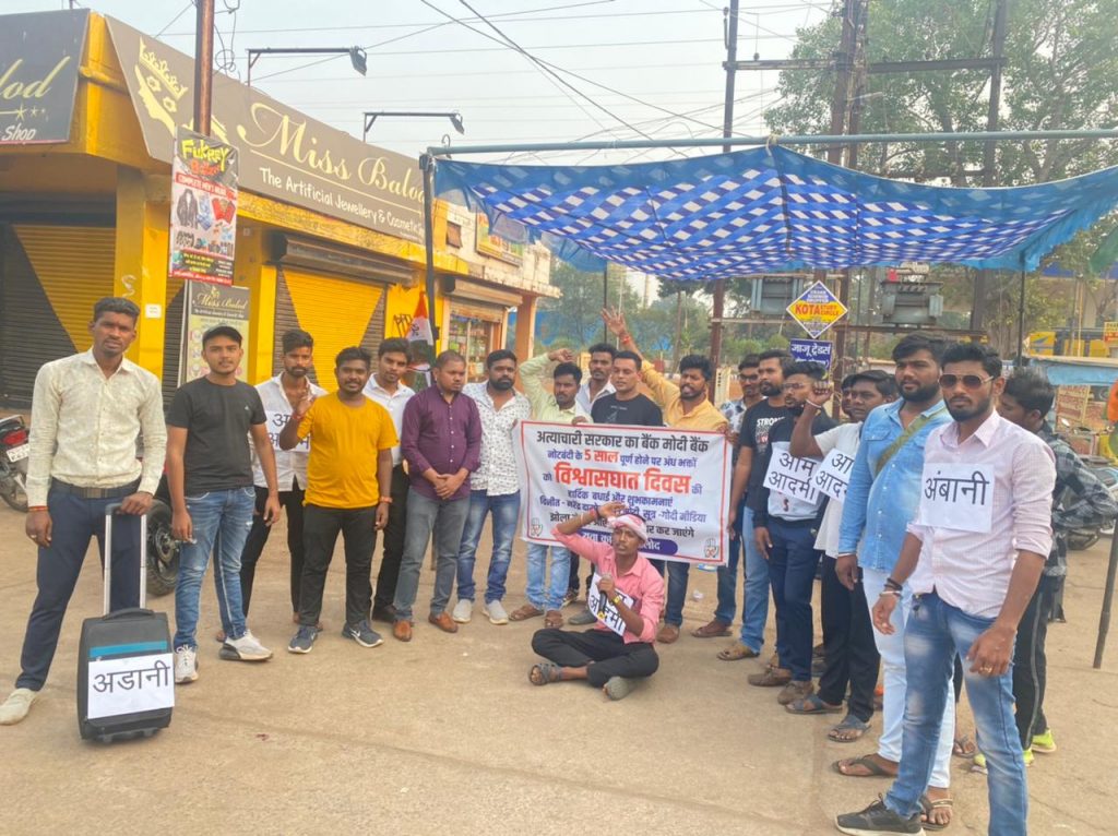 बालोद। जिलाध्यक्ष प्रशांत बोकड़े के मार्गदर्शन में बालोद युवा कांग्रेस के नेतृत्व में 8 नवंबर 2016 को हुए नोटबंदी के विफलता के 5 वर्ष पूर्ण होने पर अंध भक्तों को बधाई देते हुए और जनता के बीच मोदी सरकार की विफलताओं को रखने के उद्देश्य से युवा कांग्रेस बालोद ने नया बस स्टेशन बालोद में नुक्कड़ नाटक के माध्यम से जनता को यह संदेश दिया कि नोटबंदी सिर्फ अपने उद्योगपति दोस्तों अडानी अंबानी जैसे लोगों का काला धन को बदलने के उद्देश्य से किया गया और इससे आम जनता को सिर्फ तकलीफ हुई। बुजुर्गों महिलाओं युवाओं इससे बहुत परेशानी हुई। देश के कई नागरिक मौत के शिकार हो गए और देश की अर्थव्यवस्था बिगड़ गई। इसी तरह के मुद्दों को लेकर बालोद युवा कांग्रेस ने विश्वासघात दिवस मनाया और नुक्कड नाटक के माध्यम से आन्दोलन किया।इस कार्यक्रम में मुख्य रूप से साजन पटेल शहर युवा कांग्रेस अध्यक्ष ,संदीप साहू ब्लॉक युवा कांग्रेस अध्यक्ष, विनोद टावरी विधानसभा अध्यक्ष, दिनेश्वर साहू जिला उपाध्यक्ष युवा कांग्रेस,देवेंद्र साहू विधानसभा उपाध्यक्ष इस अवसर पर अतिथि के रूप में अनिल यादव शहर अध्यक्ष नगर कांग्रेस विनोद बंटी शर्मा जिला कार्यकारिणी सदस्य विशेष रूप से उपस्थित रहे गुलशन चंद्राकर जिला महासचिव,शानु पाल गिरीश यादव, मोहनीश पारकर ,लेखराज साहू ,गजेंद्र कुमार चंद्रहास साहू ,अनिल सोनकर, नरेंद्र देशलहरे, अवधेश सिंह, कमल कांत, नवदीप कुमार, अंचल साहू, मुकेश कुमार ,सोमदेव बंजारे, सुदर्शन शास्त्री, रविंद्र टंडन, मंगल पटेल शेख गुलाम, तुलसी राम सावेश खान, मंगलम वस्निक आदि युवा कांग्रेस के कार्य कर्ता शामिल रहे।