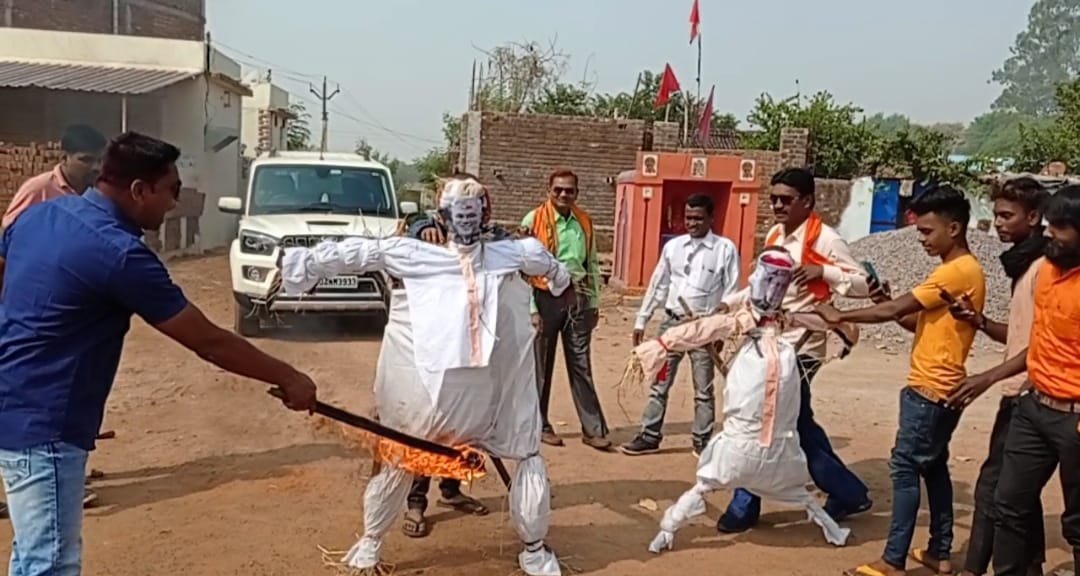 चंदन पटेल गुंडरदेही। भाजपा मण्डल गुण्डरदेही के अंतर्गत बघमरा बुथ, सहाड़ा चौक, चेंजगेंज में पुतला दहन हुआ। भाजपाइयों ने आरोप लगाया कि राज्य सरकार की तानाशाही व ख़राब नीति के कारण कवर्धा में भगवा ध्वज का अपमान करना व निर्दोष लोगों के ऊपर एफ आई आर करवाना व दबाव डाल कर ये सब सरकार अपनी पावर का गलत इस्तेमाल कर रहे है । छत्तीसगढ़ के लोगो को अपमान कर आज राज्य सरकार अपने गलत नीति से सभी वर्ग के लोग परेशान है।