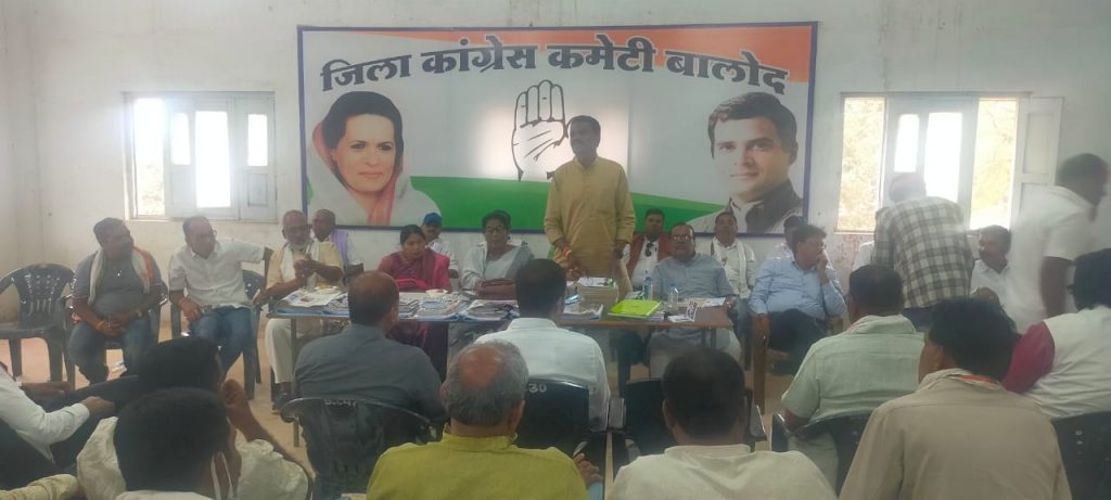 जिसमें पोस्टर पंपलेट पर्चे एवं नुक्कड़ नाटक के माध्यम से लगातार बढ़ती हुई महंगाई के खिलाफ में जन जागरण अभियान चलाया जाएगा। इसके साथ ही साथ पार्टी के द्वारा किए वायदों में अधिकांश वायदों को पूरा किए जाने की भी जानकारी आम जनमानस को दी जाएगी। बैठक में छत्तीसगढ़ प्रदेश कांग्रेस कमेटी के उपाध्यक्ष एवं बालोद जिला के प्रभारी बीरेश ठाकुर जिला अध्यक्ष चंद्रप्रभा सुधाकर पूर्व विधायक डोमेन भेंडिया पूर्व विधायक भैया राम सिन्हा जिला पंचायत अध्यक्ष सोना देवी देशलहरा जिला पंचायत उपाध्यक्ष मिथिलेश नीरोटी पूर्व जिला अध्यक्ष कृष्णा दुबे पुरुषोत्तम पटेल संजय चंद्राकर विकास चोपड़ा रतिराम कोसमा क्रांति भूषण साहू धीरज उपाध्याय शंभू साहू पियूष सोनी संजय सोनबोईर काशीराम निषाद प्रशांत बोकाडे,अनिल यादव चंद्रेश हिरवानी अशोक बाम्बैश्वर कोमेश कोराम गोपाल प्रजापति भोजराज साहू तामेश्वर साहू कोदूराम दिल्लीवार संतु राम पटेल संजय बारले केके राजू चंद्राकर बंटी शर्मा संजय साहू लता कोराम संगीता नायर करिश्मा सलाम ललिता साहू नौशाद कुरेशी रवि जायसवाल के ईश्वर राव भोला देशमुख रुकमणी किशोर रोशन पटेल रवि प्रकाश यादव विवेक मशीह राजकुमार प्रभाकर अनिल सुथार मानसिह देश लहरा दुर्गा ठाकुर जीवन लाल साहू युवराज साहू विपिन दीवान ममता मंडावी भगवती सोनकर हसीना बेगम सुमन सोनबोईर जागृत सोनकर दीनाराम चेलक दिलीप बघेल गिरीश यादव रोहित सागर दामेश्वर देशमुख एवं जिला कांग्रेस कमेटी कार्यकारिणी के समस्त सदस्य गण उपस्थित थे।