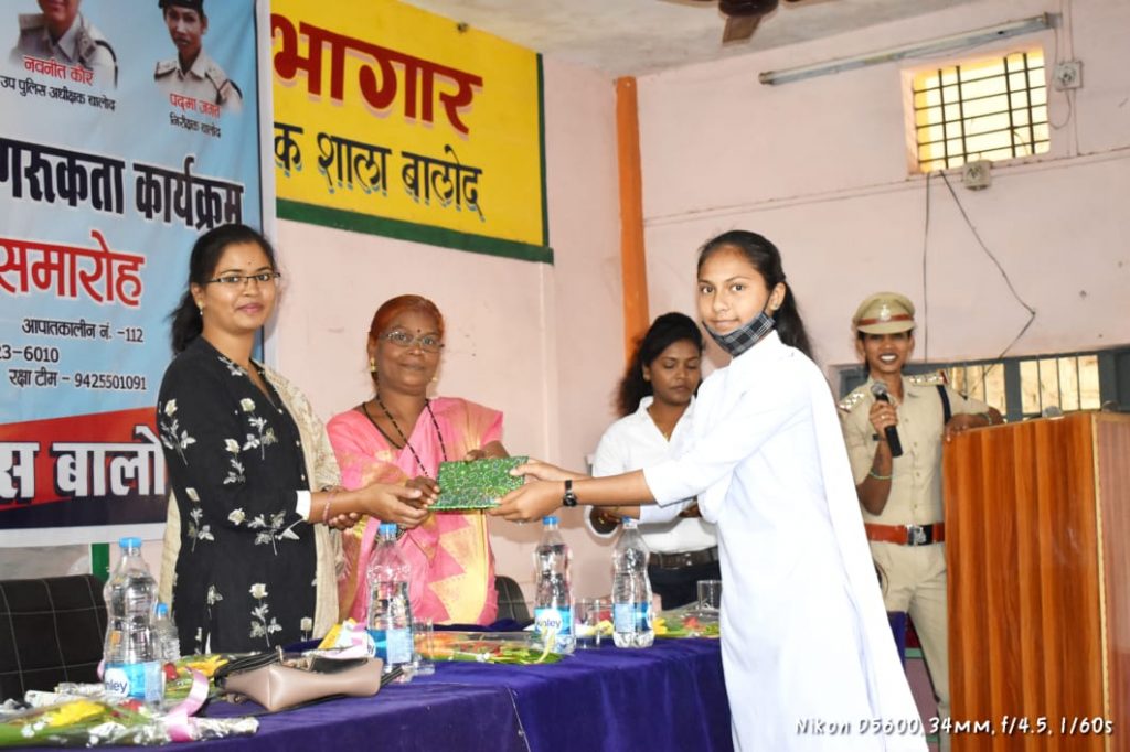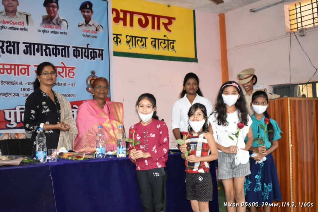 बालोद। बाल दिवस के अवसर 14 नवम्बर को बालोद पुलिस की ओर से पुलिस अधीक्षक सदानंद कुमार (भा० पु० से०) के निर्देशन एवं अति० पुलिस अधीक्षक डीआर पोर्ते, उप पुलिस अधीक्षक जिला मुख्यालय बालोद सुश्री नवनीत कौर (राज्य पुलिस सेवा) के मार्गदर्शन में अभिव्यक्ति बच्चों के सम्मान की बाल सुरक्षा जागरूकता कार्यक्रम सम्मान समारोह का आयोजन जिला मुख्यालय बालोद के बुनियादी पूर्व माध्यमिक शाला में किया गया।