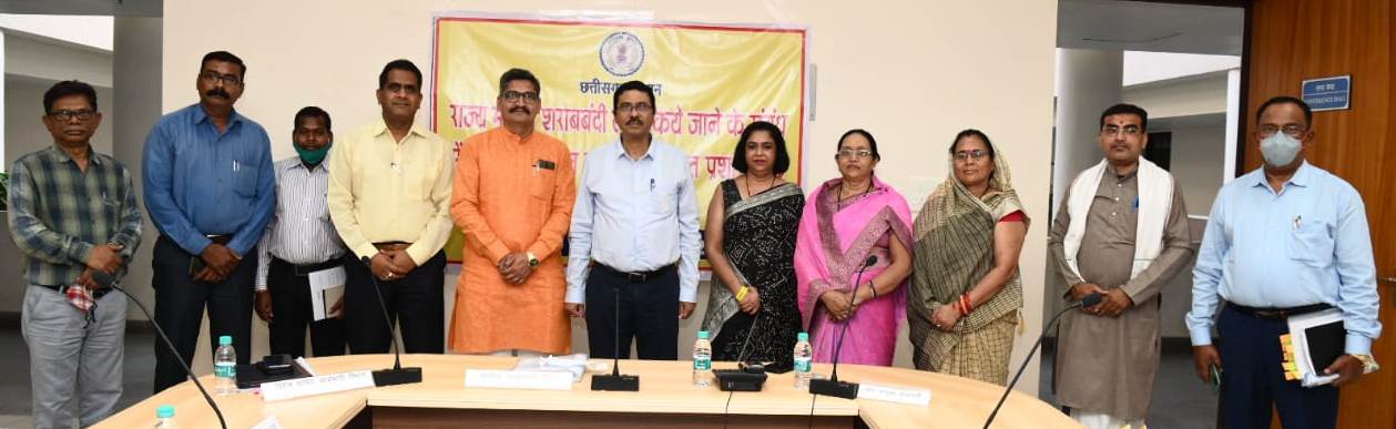 राज्य में पूर्ण शराबबंदी लागू किए जाने के संबंध में अनुशंसा हेतु आबकारी विभाग के सचिव निरंजन दास की अध्यक्षता में राज्य सरकार द्वारा गठित प्रशासकीय समिति की द्वितीय बैठक आयोजित की गई थी। बैठक सोमवार को आबकारी आयुक्त कार्यालय नवा रायपुर में सम्पन्न हुई। बैठक में प्रशासनिक समिति के सदस्यों ने विचार-विमर्श के पश्चात् राज्य में पूर्ण शराबबंदी किए जाने के संबंध में राजनीतिक और सामाजिक समिति के सदस्यों के साथ शराबबंदी वाले राज्यों का अध्ययन करने का निर्णय लिया गया। बैठक में सदस्यों ने अपने-अपने सुझाव दिए। सदस्यों ने कहा कि राज्य में शराबबंदी होने के फलस्वरूप शराब के लत व्यक्तियों के पुनर्वास, उनकी शारीरिक और मानसिक स्थिति में होने वाले परिवर्तन के लिए कार्यशाला आयोजित करने, काउंसिलिंग सेंटर-नशामुक्ति केन्द्रों की स्थापना आदि पर भी चर्चा की गई। बैठक में सदस्यों ने बच्चों को बाल्यकाल से ही नशे से दूर रखने प्राथमिक-माध्यमिक शिक्षा पाठ्यक्रम में शामिल करने पर बल दिया। सदस्यों ने यह भी कहा कि नशामुक्ति अभियान में राज्य की इन्फोर्समेंट एजेंसियों का सहयोग लिया जाना चाहिए। नशामुक्ति के क्षेत्र में सक्रिय संस्थाओं को वित्त पोषण दिया जाना चाहिए। ग्रामीण क्षेत्रों में महिला स्वसहायता समूहों तथा महिला कमांडो के माध्यम से जन-जागरूकता अभियान चलाया जाना चाहिए। सदस्यों ने कहा कि नशामुक्ति के प्रति जागरूकता के लिए सिनेमाघरों में शॉर्ट फिल्म के माध्यम से जागरूकता मुहिम चलाया जाए। अवैध मदिरा पर कड़ाई से रोकथाम करने के भी सुझाव दिए गए।