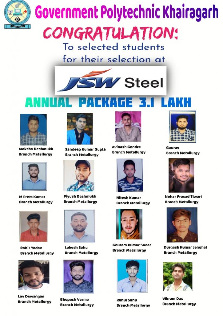 खैरागढ़।कोरोना के समय में जहां लोगो की नौकरी जा रही है वहीं शासकीय पॉलीटेक्निक खैरागढ़ ने कैंपस प्लेसमेंट में नया रिकॉर्ड स्थापित किया है। विद्यार्थियों को पढ़ाई करते हुए नौकरी देने के मामले में शासकीय पॉलीटेक्निक खैरागढ़, छत्तीसगढ़ में अग्रणी पॉलीटेक्निक संस्थाओं में से एक है। शिक्षा स्तर में सुधार और संस्था में गठित प्लेसमेंट सेल के प्रयासों से कैंपस प्लेसमेंट में लगातार बढ़ोतरी हो रही है। इस वर्ष अभी तक 80 विद्यार्थियों का कैंपस प्लेसमेंट विभिन्न कंपनियों में हो गया है और अभी और भी कंपनियां प्लेसमेंट के लिए आने वाली है।