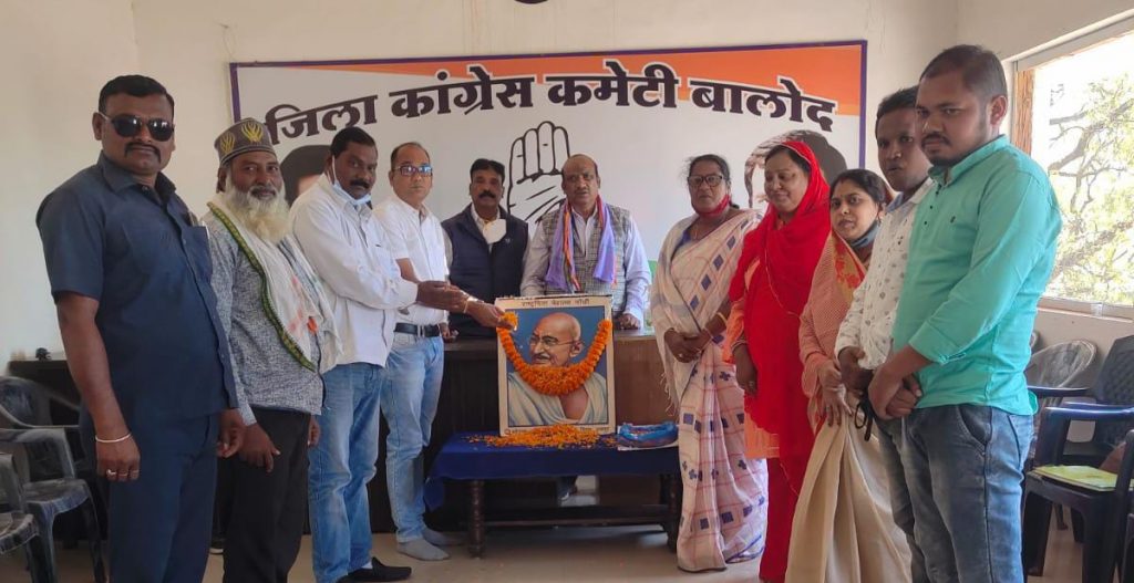 बालोद/ गुण्डरदेही। ब्लाक कांग्रेस कमेटी गुंडरदेही के अध्यक्ष भोजराज साहू के नेतृत्व में राष्ट्रपिता महात्मा गांधीजी की 74 वीं पुण्यतिथि विधायक कार्यालय गुंडरदेही में शहीद दिवस के रूप में मनाई गई।उपस्थित कांग्रेसजनों ने बापूजी के तैलचित्र पर पुष्पांजलि अर्पित कर उनके व्यक्तित्व एवं कृतित्व का पुण्य स्मरण किया।