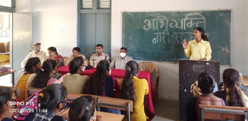 सहायक प्राध्यापक मयंक मंडावी एवं देवानन्द वर्मा , सुरेंद्र कुमार साहू, गिरधारी वर्मा, भावना साहू उपस्थित रहें। कार्यक्रम का संचालन सहायक प्राध्यापक मयंक मांडवी ने किया।कार्यक्रम में मुख्य अतिथि के रूप में थाना प्रभारी अरूण कुमार नेताम डौंडी लोहारा थे। विशिष्ट अतिथि श्रीमति पदमा जगत ( इनचार्ज महिला सेल) एवं विशेष अथिति हरीशंकर साहु (SI) उपस्थित रहे। मुख्य वक्ता के रूप पदमा जगत् ने बताया नारी सुरक्षा एवं नारी सम्मान के लिए सरकार ने “अभिव्यक्ति उमेन एप” जारी किया है। जिसके माध्यम से प्रत्येक व्यक्ति को तत्काल सुरक्षा मुहइया कराया जा सकता है। साथ ही साथ उन्होंने बताया कि, 112 हेल्प लाइन नंबर के माध्यम से भी सहायता ली जा सकती है।