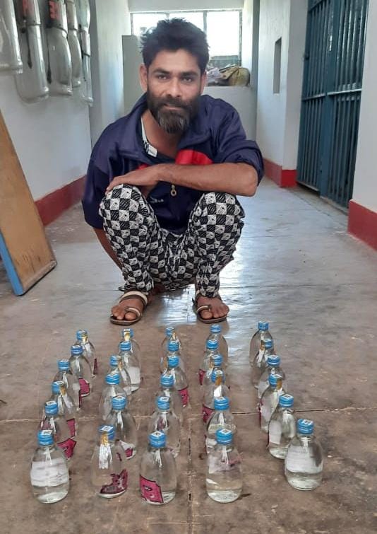 पुलिस अधीक्षक बालोद गोवर्धन ठाकुर के आदेशनुसार अनुविभागीय उप पुलिस अधीक्षक सोनसाय मौर्य के मार्गदर्शन में तथा थाना प्रभारी अर्जुन्दा कुमार गौरव के निर्देशन में थाना अर्जुंदा में अवैध शराब बिक्री करने की सूचना पर एक व्यक्ति जो स्कूटी वाहन में अवैध शराब बिक्री करते पकड़ा गया जिसे नाम पुछने पर रामखिलावन सिन्हा उर्फ राज पिता ईतवारी राम सिन्ह उम्र 42 वर्ष निवासी प्रगति नगर वार्ड न. 04 अर्जुन्दा थाना अर्जुन्दा जिला बालोद का रहने वाला बताया। जिसके पास से तलासी उपरांत एक सफेद रंग के मटमैला थैला में 30 पौवा देशी प्लेन शराब व बिक्री रकम 230 रू0 एवं स्कुटी वाहन बिना नंबर कीमती 50,000 रू को गवाहों के समक्ष बरामद किया गया।आरोपी को धारा 91 का नोटिस दिया गया जो शराब बिक्री करने के संबंध में कोई कागजात नहीं होना लिखकर दिये है। आरोपी से बरामद शराब को गवाहो के समक्ष जप्त किया गया। जप्त शराब में से 04 पौव्वा शराब को आबकारी कार्यालय गुण्डरदेही परीक्षण हेतु भेजी गई । आरोपी को वाहन संबंधी कागजात पेश करने धारा 91 जा फौ का नोटिस दिया गया। जो कोई कागजात नहीं होना लिखकर दिये है। घटना स्थल का नजरी नक्शा तैयार किया गया। आरोपी के विरुद्ध अपराध सिद्ध पाये जाने से राम खिलावन सिन्हा उर्फ राज पिता ईतवारी राम सिन्हा, उम्र 42 वर्ष साकिन प्रगति नगर वार्ड न. 04 अर्जुन्दा, थाना अर्जुन्दा जिला बालोद को 14 मार्च को गिरफ्तारी कर जेल भेजा गया । आरोपी शराब ब्रिकी करने का आदी है। जिसके विरुद्ध वर्ष 2021 में अपराध क्रमांक 118 / 2021 धारा 34(2) आब एक्ट की कार्यवाही कर चालान माननीय न्यायालय के समक्ष पेश किया गया है तथा आरोपी पूर्व से शराब बिक्री तथा मारपीट जैसे अपराधिक प्रकरण में आरोपी की संलिप्तता रही है। जिसमें आरोपी के खिलाफ विधिसम्मत कार्यवाही कर माननीय न्यायालय में चालान पेश किया गया है।