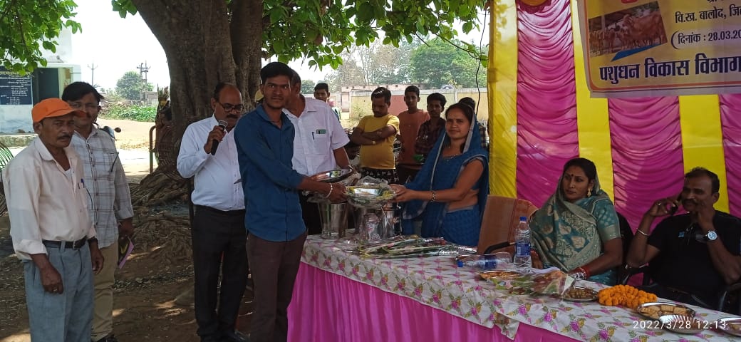 इस दौरान आमंत्रित अतिथियों जनपद सदस्य छगन देशमुख, शारदा सिन्हा, सरपंच वारुणी देशमुख ने किसान व पशुपालकों को विभाग की योजनाओं का लाभ उठाने की अपील की पशुपालन वा दुग्ध व्यवसाय को बढ़ावा देने के लिए प्रेरित किया गया। इस अवसर पर प्रमुख रूप से पशु चिकित्सक टीडी देवांगन, मुरारीलाल सुकतेल, शिवेन्द्र देशमुख, लाल बहादुर बघेल सहित अन्य मौजूद रहे।
