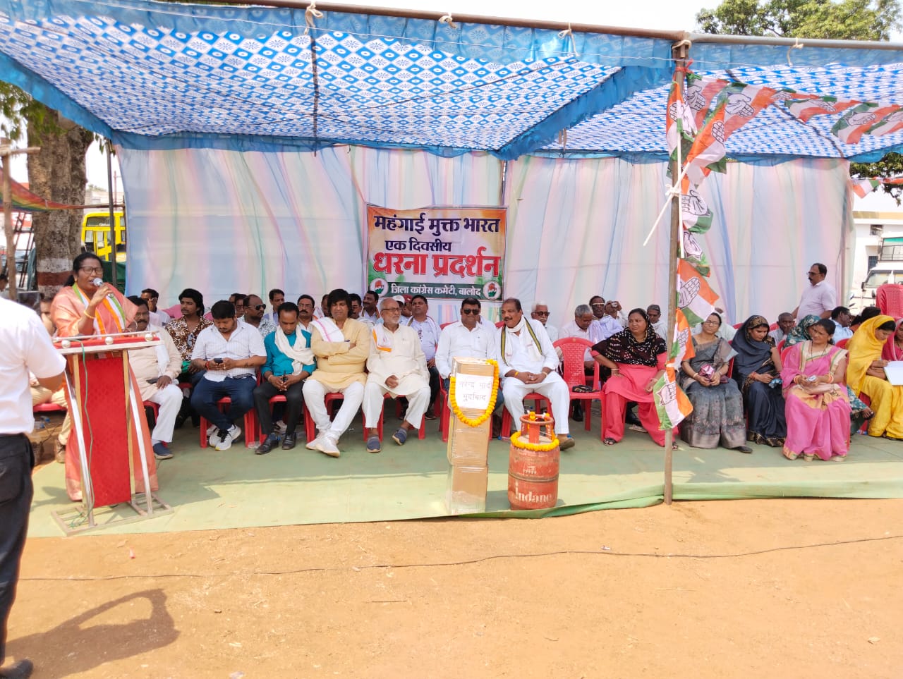 बालोद। अखिल भारतीय कांग्रेस कमेटी नई दिल्ली के महंगाई मुक्त भारत के अंतर्गत प्रदेश कांग्रेस कमेटी के निर्देश पर जिला कांग्रेस कमेटी बालोद के अध्यक्ष श्रीमती चंद्रप्रभा सुधाकर के नेतृत्व में महंगाई मुक्त भारत का आह्वान करते हुए धरना प्रदर्शन किया गया। इस अवसर पर जिला कांग्रेस कमेटी के अध्यक्ष चंद्र प्रभा सुधाकर सभा को संबोधित करते हुए कहा कि आज 15 दिन के भीतर पेट्रोल और डीजल के दाम ₹13 तक बढ़ चुके हैं। इसी तरह से गैस सिलेंडर के दाम भी ₹1200 के करीब पहुंच रहा है। खाने के तेल की कीमत भी ₹200 किलो हो गया है। इस तरह बढ़ते हुए महंगाई से लोगों का जीवन जीना दूभर हो रहा है और इस सब के लिए केंद्र में बैठी हुई मोदी सरकार जिम्मेदार है। आज आयोजन के माध्यम से महंगाई मुक्त भारत का आह्वान करते हैं और आने वाले समय में महंगाई बढ़ाने वाली ऐसी सरकार को उखाड़ फेंकने का संकल्प लेते हैं। आज के इस धरना प्रदर्शन में अध्यक्ष के अलावा कृष्णा दुबे पूर्व अध्यक्ष राम जी भाई पटेल पुरुषोत्तम पटेल हसीना बेगम प्रशांत बोकड़े रवि जायसवाल संगीता नायर चंद्रेश हिरवानी जेबा कुरैशी दीनाराम चेलक गिरीश चंद्राकर भोलाराम नेताम ने भी सभा को संबोधित किया।