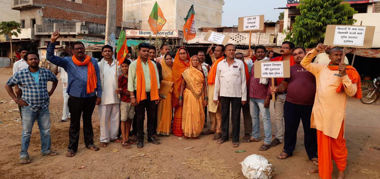बालोद। भुपेश सरकार के द्वारा किसानों के साथ जो अन्याय किया जा रहा है। जिसके खिलाफ भारतीय जनता पार्टी के पदाधिकारी, कार्यकर्ता एवं किसानों ने अपना विरोध प्रदर्शन करहीभदर बाजार चौक व लाटाबोड़ बस स्टैंट में किया गया। किसानों को राजीव गांधी न्याय योजना के अंतर्गत धान खरीदी की चौथी किस्त का भुगतान में 30% से 40% राशि की कटौती की गई है। जो कि किसानों के साथ अन्याय है। प्रदेश सरकार द्वारा किसानों की कमाई पर डाका डाला गया है। जिससे प्रदेश के किसान आक्रोशित हैं।
