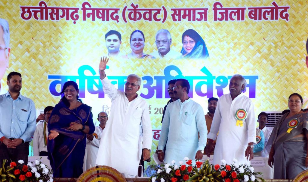 प्रदेश के मुख्यमंत्री भूपेश बघेल बालोद जिले के डौण्डी विकासखण्ड के ग्राम घोटिया में आयोजित निषाद(केंवट) समाज के वार्षिक अधिवेशन में भी शामिल हुए। निषाद समाज द्वारा मुख्यमंत्री का फूलमालाओं से उत्साहपूर्वक स्वागत किया गया। इस अवसर पर मुख्यमंत्री श्री बघेल ने कहा कि निषाद समाज मेहनतकश समाज है। मुख्यमंत्री श्री बघेल ने डौण्डीलोहारा विधानसभा क्षेत्र की विधायक श्रीमती अनिला भेंडिया की मॉग पर घोटिया में मंगल भवन और महाविद्यालय खोलने की घोषणा की। मुख्यमंत्री ने संसदीय सचिव एवं गुण्डरदेही के विधायक श्री कुंवर सिंह निषाद की मॉग पर अर्जुन्दा महाविद्यालय का नामकरण शहीद दुर्वासा निषाद के नाम पर किए जाने की घोषणा की। मुख्यमंत्री श्री बघेल ने अधिवेशन को संबोधित करते हुए कहा कि हमारी सरकार समाज के हर वर्ग की खुशहाली के लिए काम कर रही है। सभी समाज के लोगों को आगे बढ़ने का अवसर मिले इसके लिए हर संभव कदम उठाए जा रहे हैं। सरकार छत्तीसगढ़िया स्वाभिमान को बढ़ाने का कार्य कर रही है। यहॉ कि संस्कृति को पुर्नजीवित कर लोगों के स्वास्थ्य, शिक्षा और रोजगार के विशेष रूप से ध्यान दिया जा रहा है।