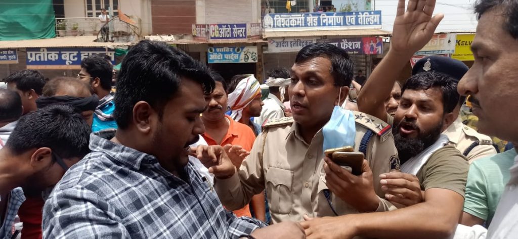 पुलिस वालों से भी हुई धक्का-मुक्की, टीआई जान जोखिम में डाल संभालते रहे मोर्चा