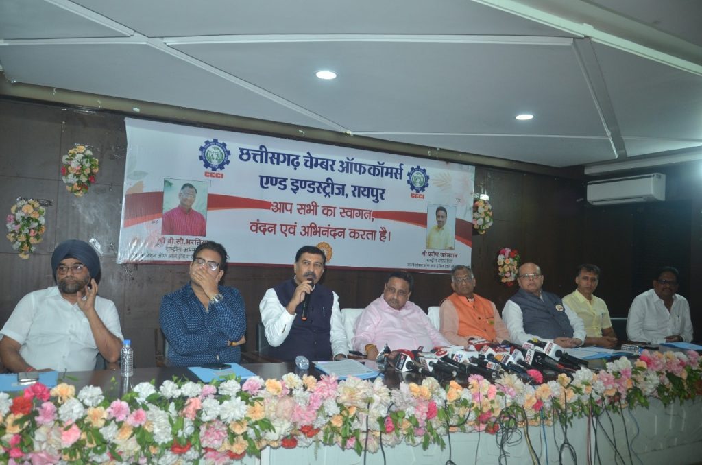 बालोद। छत्तीसगढ़ चेम्बर ऑफ कॉमर्स एंड इंडस्ट्रीज एवं कन्फेडरेशन ऑफ ऑल इंडिया ट्रेडर्स( कैट) सी.जी.चेप्टर के संयुक्त तत्वाधान में ”व्यापार सम्मेलन” चेम्बर कार्यालय चै. देवीलाल व्यापार उद्योग भवन, बाम्बे मार्केट, रायपुर में आयोजित की गई। जिसमें बालोद जिले के व्यापारी भी शामिल हुए और अपनी बात रखी। छत्तीसगढ़ चेम्बर ऑफ कॉमर्स एंड इंडस्ट्रीज के प्रदेश अध्यक्ष अमर पारवानी, महामंत्री अजय भसीन, कोषाध्यक्ष उत्तमचंद गोलछा, कार्यकारी अध्यक्ष राजेन्द्र जग्गी, विक्रम सिंहदेव,राम मंधान, मनमोहन अग्रवाल एवं कैट के प्रदेश अध्यक्ष जितेन्द्र दोशी, महामंत्री सुरिन्दर सिंह एवं कोषाध्यक्ष अजय अग्रवाल ने बताया कि