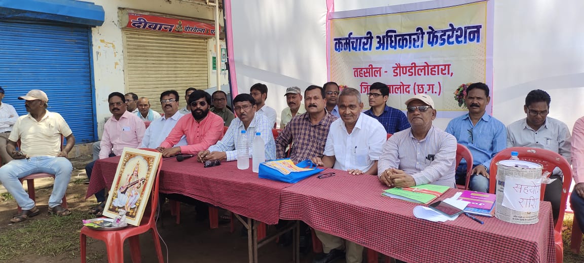 बालोद। बुधवार के धरना प्रदर्शन का शुभारंभ बीईओ एल. के. ठाकुर, एन. एस. मानकर,एस. आर.खांडेकर एवं सभी पदाधिकारियों द्वारा माँ शारदे की पूजा अर्चना एवं सामूहिक रूप से राज्यगीत अरपा पैरी के धार के द्वारा किया गया। इसके पश्चात शिक्षक संघ के जिलाध्यक्ष वाय. के.दिल्लीवार द्वारा उपस्थित सभी कर्मचारियों एवं अधिकारियों को आंदोलन की रूपरेखा से अवगत कराया गया और अपील किया गया कि ये सरकार के अभी तक के रवैये को देखते हुए आप सभी को अनिश्चित कालीन हड़ताल के लिए भी तैयार रहना है और उन्होंने विश्वास दिलाया कि अभी तक आंदोलन से किसी का अहित नहीं हुआ है और न ही भविष्य में होगा। आवश्यकता है तो हमे एकजुट होकर रहने की। बीईओ डौंडीलोहाराएल. के. ठाकुर द्वारा सरकार से अपनी बात व्यक्त किया गया कि हरियाली अमावस्या पर सभी कर्मचारियों को 34% डीए और सातवें वेतनमान पर एचआरए का सौगात दे दीजिए ताकि हम अपने कर्तव्य स्थल पर अपनी उपस्थिति दे सके। साथ ही साथ उन्होंने सभी शिक्षकों को धरना स्थल पर उपस्थित होने का आह्वान किया।