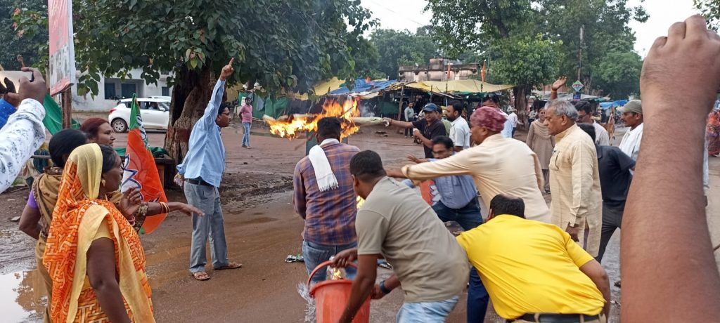 बालोद| भारतीय जनता पार्टी शहर मंडल बालोद द्वारा लोकसभा के प्रतिपक्ष के नेता कांग्रेसी सांसद अधीर रंजन चौधरी का पुतला जलाया गया। देश के सर्वोच्च पद में आसीन नवनिर्वाचित महामहिम राष्ट्रपति द्रौपदी का अपमान करने वाले कांग्रेसी सांसद अधीर रंजन चौधरी द्वारा बोला गया अशब्द अमर्यादित व सांसद की गरिमा मर्यादा से बाहर है राष्ट्रपत्नी जैसे शब्दों का इस्तेमाल कर राष्ट्रपति के साथ साथ पूरे देशवासियों का अपमान है आदिवासी महिला का अपमान है। भारतीय जनता पार्टी शहर मंडल बालोद ने अधीर रंजन चौधरी कांग्रेसी सांसद की ऐसी ओछी हरकत का पुरजोर विरोध करते हुए निंदा प्रस्ताव पारित कर पूरे देशवासियों से माफी मांगने की बात कहते हुए बालोद नगर के हृदय स्थल जय स्तंभ कचहरी चौक पर पुतला दहन किया गया। पुलिस के साथ भाजपा कार्यकर्ताओं का झुमा झटकी हुई। इस अवसर पर पुतला दहन करने वाले भाजपा मंडल अध्यक्ष सुरेश निर्मलकर, जिला मंत्री शरद ठाकुर, मंडल महामंत्री संतोष कौशिक, नरेंद्र सोनवानी मंडल उपाध्यक्ष ,मोहन कलिहारी, बृजेश गुप्ता, युवा मोर्चा प्रदेश कार्यसमिति अमित चोपड़ा, रिंकू शर्मा, गणेश साव, पंकज आहूजा, बंटी बाफना, मंडल मंत्री कमल पनपालिया, प्राची लालवानी, शहर महिला मोर्चा अध्यक्ष हितेशवरी कौशिक, पार्षद सरोजिनी साहू, संदीप सिन्हा, उत्तम साहू, सुरेश यादव, रमेश मालेकर, प्रीतम यादव, डोमिन साहू, संदीप सिन्हा, दिनेश साहू, राम दास मानिकपुरी,कल्याणी कौशिक, सुशीला यादव, निर्मला यादव, बारिश यादव, ममता यादव उपस्थित थे।