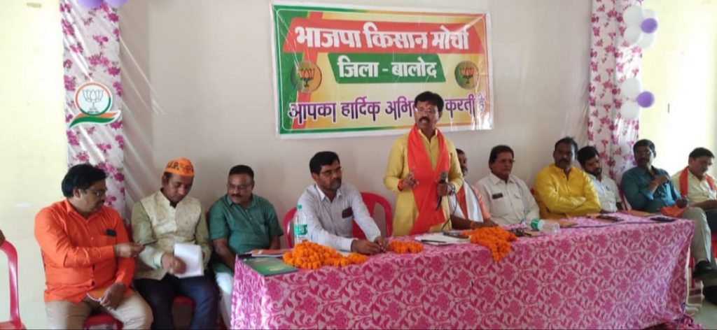 बालोद। भाजपा किसान मोर्चा का जिला कार्यसमिति बैठक जिला प्रभारी व प्रदेश उपाध्यक्ष कोमल सिंह राजपूत के मुख्य अतिथि, जिला अध्यक्ष किसान मोर्चा तोमन साहू की अध्यक्षता एवं प्रदेश मंत्री पवन साहू वरिष्ठ भाजपा नेता छगन देशमुख प्रदेश कार्यसमिति सदस्य गण चेमन देशमुख, पुष्पेंद्र चंद्राकर, नागेंद्र चौधरी, सोमेश साहू , जगदीश देशमुख, प्रेम साहू सुरेश् निर्मलकर के आतिथ्य में संपन्न हुआ। सर्वप्रथम जिला अध्यक्ष किसान मोर्चा तोमन साहू ने स्वागत भाषण देते हुए कहा कि संगठन में किसान मोर्चा की महत्वपूर्ण भूमिका है। राष्ट्रीय प्रदेश एवं जिला नेतृत्व के आवाहन पर जो भी कार्य दिए है उसे सफलतापूर्वक किसान मोर्चा ने संपादित किया है और आगे भी उससे भी मजबूती के साथ किसान मोर्चा अपने कर्तव्य को निर्वहन करते हुए किसानों के हक एवं उनके समस्याओं के निराकरण के लिए किसान विरोधी भूपेश सरकार से लड़ेगी।