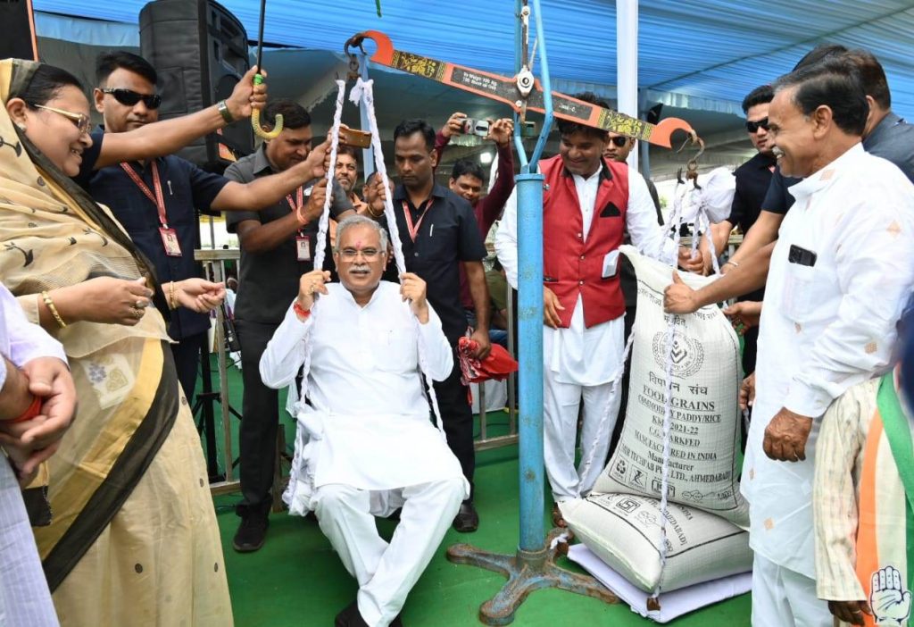मुख्यमंत्री श्री भूपेश बघेल को मालीघोरी में कोदो अन्न से तौला गया।