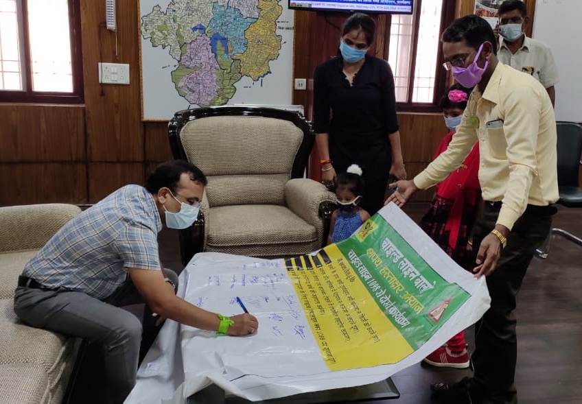 बालोद। 14 नवंबर से 21 नवंबर तक चाइल्ड लाइन द्वारा चाइल्ड लाइन से “दोस्ती सप्ताह” का आयोजन किया गया। इस अवसर पर बच्चों ने कलेक्टर जन्मेजय महोबे एवं उपपुलिस अधीक्षक डीआर पोर्ते को रक्षा बैण्ड बांधकर बाल संरक्षण की शपथ दिलाई। बाल संरक्षण की रक्षा हेतु कलेक्टर और उपपुलिस अधीक्षक, जिला कार्यक्रम अधिकारी एचआर राणा सहित विभिन्न विभागों के अधिकारियों ने हस्ताक्षर कर शपथ ली।