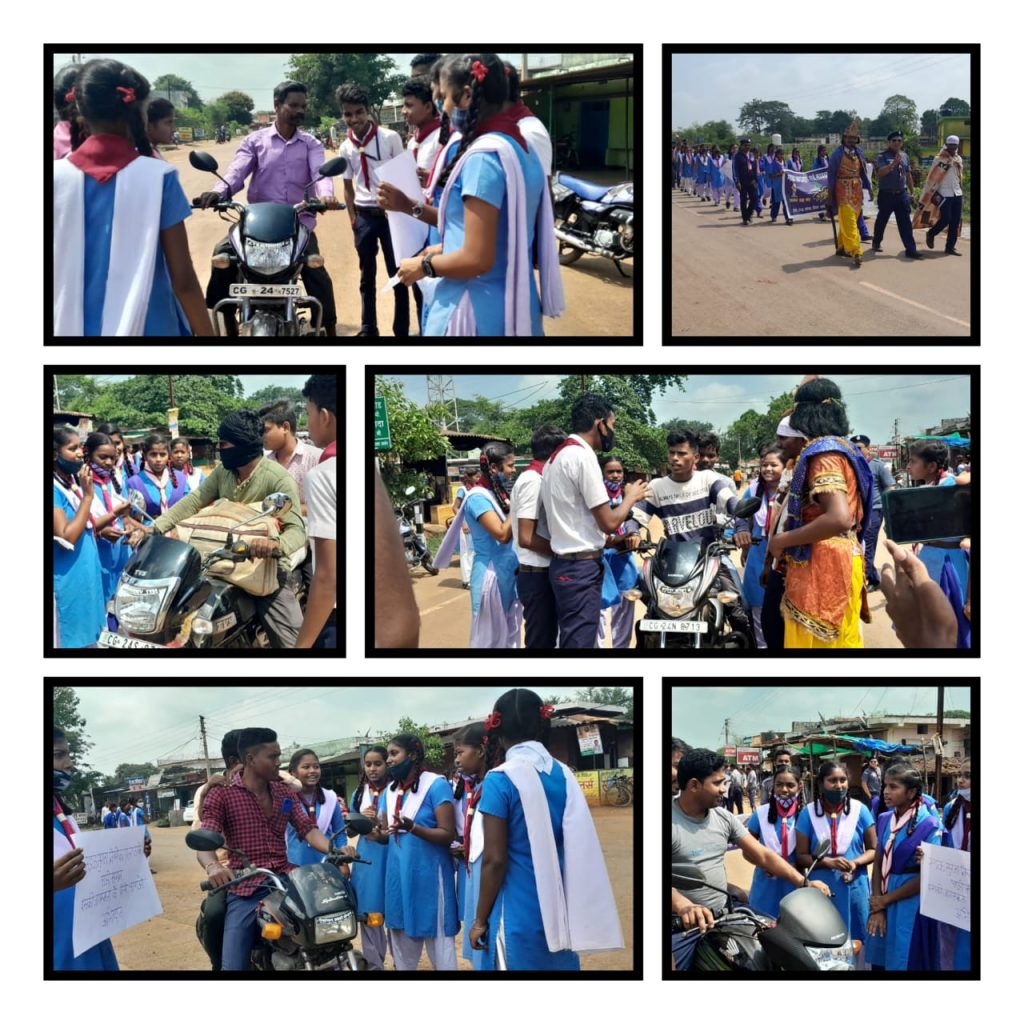 टिकेश्वर,मनीषा,साक्षी साहू,तुलेश्वरी, महिमा, ज्योतिका,शुभांगी, लेखनी सराहनीय कार्य किया। विद्यार्थी किशन ने यमराज की पोशाक पहनकर लोगो में जागरुकता फैलाते मुख्य भूमिका निभाई ।जिसमें लोगो को जानकारी दी कि नजर हटी तो दुर्घटना घटी।