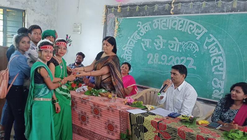 कार्यक्रम के प्रारंभ में एनएसएस के कार्यक्रम अधिकारी प्रोफेसर नरेन्द्र कुमार कुर्रे ने एनएसएस के बारे में जानकारी प्रदान करते हुए एनएसएस के माध्यम से जन सेवा राष्ट्र सेवा हेतु युवा वर्ग को आगे आने एवम शिक्षा के साथ साथ स्वयं के व्यक्तित्व के विकास करने हेतु छात्रों को प्रेरित किए । कार्यक्रम में महाविद्यालय के वरिष्ठ प्राध्यापक डाक्टर पी.के.सिंह ने संस्कृत के श्लोकों के माध्यम से छात्रों को नैतिकता के साथ अच्छे आचरण बनाए रखने हेतु प्रेरित किया।हिंदी विभागाध्यक्ष डॉ. प्रवीण साहू ने एनएसएस के प्रतीक पुरुष स्वामी विवेकानंद जी के जीवन के बारे में कई उदाहरण देते हुए छात्रों को स्वामी जी के बताए रास्ते में चलकर जीवन सफल करने हेतु प्रेरित किया। इसी बीच छात्र राज सोनी , पंकज, पुष्पेंद्र, मुस्कान, दिशा, नूतन के द्वारा ” कर्मा के ताल मा झूमे….” गीत एवम नृत्य की प्रस्तुति दिए तत्पश्चात कार्यक्रम के मुख्य अतिथि प्राचार्य प्रो. अरुण कुमार व्ही. ने अपने उदबोधन में एनएसएस के छात्रों को स्वयं की सेवा के साथ साथ लोगों के आदर सम्मान करते हुए एनएसएस के सिद्धांत वाक्य “मैं नहीं आप” को अपने जीवन में चरितार्थ करने हेतु तथा अपने साथ साथ महाविद्यालय का नाम रोशन करने हेतु प्रेरित किया। कु. मोनिका नायक ने प्रथम सत्र के समापन समारोह हेतु सभी का धन्यवाद ज्ञापित किया। एनएसएस के स्थापना दिवस के अवसर पर द्वितीय सत्र में रंगारंग सांस्कृतिक कार्यक्रमों की प्रस्तुति हुई जिसमें एनएसएस के नारों के साथ “जेला बोले पड़की मैना..” मया के चिन्हा…की प्रस्तुति डोमन सिंह एवम ममता सिंह के द्वारा दी गई । उक्त सभी सांस्कृतिक कार्यक्रम में से प्रथम स्थान पर “करमा के ताल मा झूमे” नृत्य प्रस्तुति रही। जिसे डॉ.कविता सिंह वरिष्ठ प्राध्यापक के हाथों मेडल प्रदान कर सम्मानित किया गया ।द्वितीय स्थान पर “मया के चिन्हा.. ” को डॉ. ए. जॉन वरिष्ठ प्राध्यापक एवम तीसरे स्थान पर कु.दिशा एवम पंकज के द्वारा प्रस्तुत पैरी के ताल…को डॉ.प्रवीण साहू , प्राध्यापक डॉ.धर्मेंद्र सिंह, कु.कांति, श्रीमती यामिनी एवम राजेश ठाकुर के द्वारा सम्मानित किया गया।उक्त कार्यक्रम में मंच संचालन डॉ. प्रवीण गुप्ता एवम विनय कौशिक ने किया। महाविद्यालय के १२० एवम प्राध्यापकों श्रीमती अनिता ठाकुर , दिनेश मखीजा,मोहन लाल, ग्रंथपाल राकेश कोठरी, सिकलेश कुमार, एवम डिकेश कुमार , दुर्गेश्वरी ,योगिता , विनय नेगी , प्रियांशु , सहित समस्त महाविद्यालय स्टाफ उपस्थित रहे ।