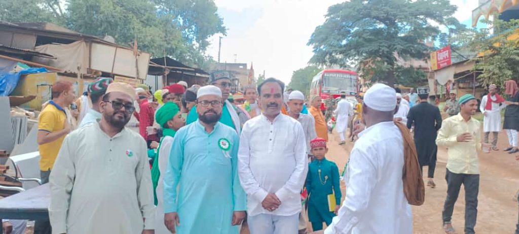 दल्लीराजहरा। ईद मिलाद उन नबी के मुबारक मौके पर मुस्लिम समाज के लोगो द्वारा जुलूस निकाला गया। जुलूस में जनपद सदस्य संजय बैस शामिल होकर सभी मुस्लिम समाज के लोगो को बधाई दिए और जुलूस में शामिल सभी लोगो को शरबत वितरण जनपद सदस्य संजय बैस ने वितरण किया। मुस्लिम समाज के सदर वहीद खान ने कहा संजय बैस हमारे जनपद सदस्य हमेशा समाज का सहयोग करते हैं। हम सभी मुस्लिम समाज के लोग आभार व्यक्त करते है। संजय बैस ने कहा ईद मिलाद उन नबी के मुबारक अवसर पर आप सभी को बधाई देता हूं। यह पर्व आपसी भाई चारा और प्रेम के साथ मना रहे है। ये हिंदू मुस्लिम एकता का परिचायक है। शरबत वितरण के कार्यक्रम में दीपक यादव उपसरपंच, नितिन जैन, पुष्पजीत बैस, तिलोक कोठारी, गज्जू गोपाल साहू उपस्थित रहे।