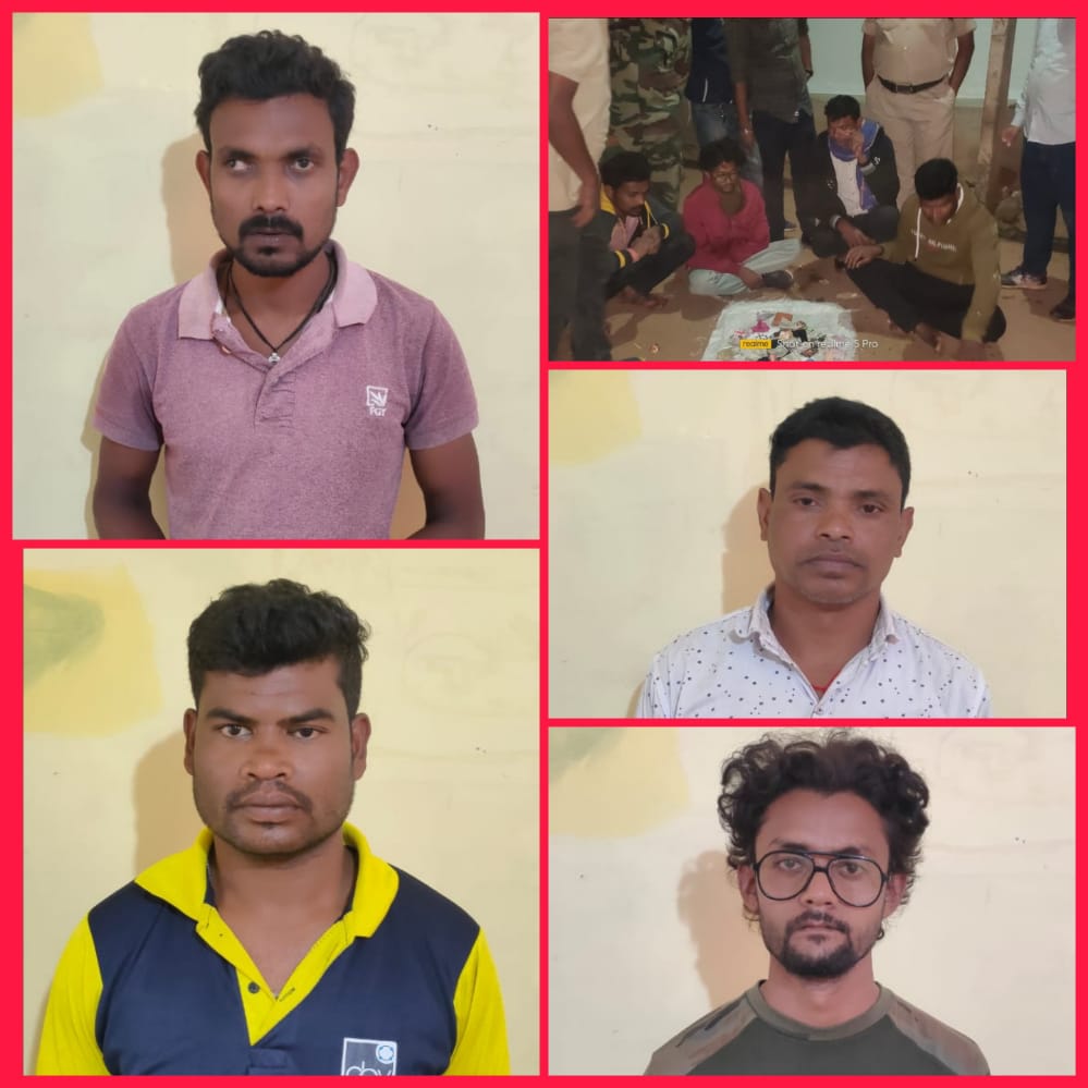 आरोपी – (1) घनश्याम कुलदीप पिता लाला राम कुलदीप उम्र 28 वर्ष (2) दुष्यंत कुमार पिता सरजु राम ठाकुर उम्र 35 वर्ष(3) रंजीत मानकर पिता किर्तन मानकर उम्र 40 वर्ष (4) विरेन्द्र दुबे पिता शिव प्रसाद दुबे उम्र 37 वर्ष (5) तुलाराम गोरे पिता बिसौहा राम गोरे उम्र 37 वर्ष साकिनान चिल्हाटीकला थाना डौण्डीलोहारा से 1050रू नगदी