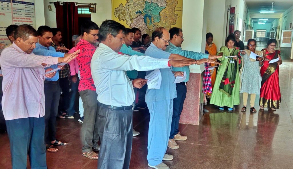 राष्ट्रीय एकता दिवस के अवसर पर संयुक्त जिला कार्यालय परिसर में अधिकारियों-कर्मचारियों ने राष्ट्रीय एकता दिवस की शपथ ली। अधिकारियों-कर्मचारियों ने शपथ लिया कि ‘‘मैं सत्यनिष्ठा से शपथ लेता हूॅ कि मैं राष्ट्र की एकता, अखंडता और सुरक्षा को बनाए रखने के लिए स्वयं को समर्पित करूंगा और अपने देशवासियों के बीच यह संदेश फैलाने का भी भरसक प्रयत्न करूंगा। मैं यह शपथ अपने देश की एकता की भावना से ले रहा हॅू, जिसे सरदार वल्लभ भाई पटेल की दूरदर्शिता एवं कार्यों द्वारा संभव बनाया जा सका। मैं अपने देश की आंतरिक सुरक्षा सुनिश्चित करने के लिए अपना योगदान करने का भी सत्यनिष्ठा से संकल्प करता हॅू। शपथ लेने वालों में एडीएम श्री योगेन्द्र श्रीवास, डिप्टी कलेक्टर अमित श्रीवास्तव, सुरेश साहू सहित विभिन्न विभागों के अधिकारी कर्मचारी आदि शामिल थे।