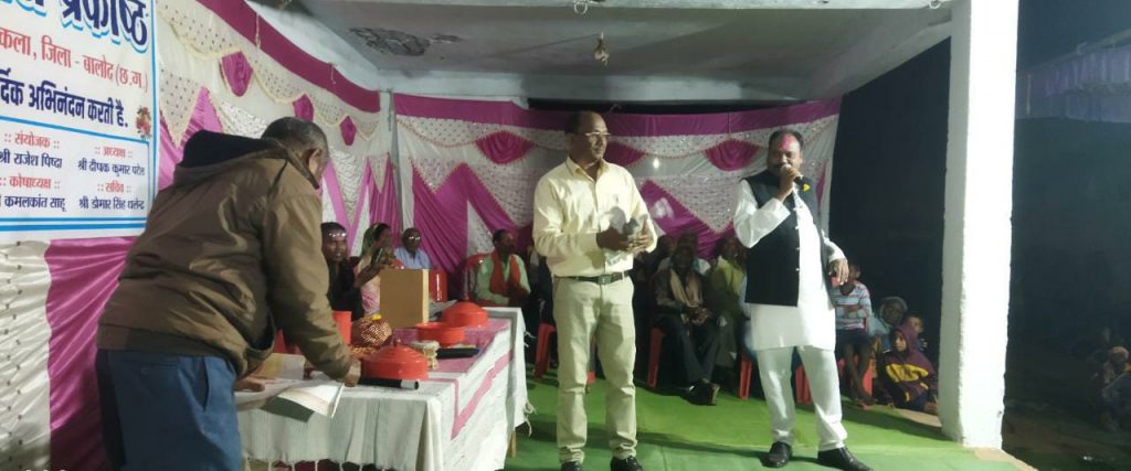 इस अवसर पर कर्मचारी प्रकोष्ठ से अध्यक्ष दीपक पटेल ,उपाध्यक्ष रमेश ठाकुर कोषाध्यक्ष कमल कांत साहू सचिव डोमार धलेन्द्र,दशरथ पटेल, रमेश पटेल, तुमेंद्र रात्रे, चिरंजीव कोसमा, प्रेम साहू,कपिल भुआर्य, आशा बाई कोसमा,दुखु राम साहू एवम ग्राम से टोपसिंग साहू(ग्राम प्रमुख) सियाराम पटेल ,मेघनाथ साहू, हिरामन कोशमा, कपिल भुआर्य,रघ्घू मानकर, रोहित पटेल सुकदेव पटेल चिंताराम साहू,भगवती माहेश्वरी,सरोज पटेल ,कुलेश्वरी साहू,निर्मला पटेल,प्रेम पटेल एवन पटेल सहित समस्त ग्रामीण जन उपस्थित रहे।