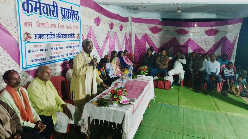 बालोद। ग्राम चिल्हाटी कला में गठित कर्मचारी प्रकोष्ठ 1 वर्ष पूर्ण होने पर वार्षिक कार्यक्रम हुआ। कर्मचारी प्रकोष्ठ के सदस्यों द्वारा अनूठी पहल का आगाज करते हुए अध्यक्षता कर रहे राजेश पिस्दा संयोजक कर्मचारी प्रकोष्ठ ने कहा कि हम जिस मिट्टी में जन्म लिए उस मिट्टी का कर्ज हम अपने ग्राम के पढ़ने वाले बच्चों को सही मार्गदर्शन देकर कर सकते हैं। जिससे ग्राम के अधिक से अधिक बच्चे रोजगार की प्राप्ति कर अपना और अपने परिवार के भविष्य को संवार सके।