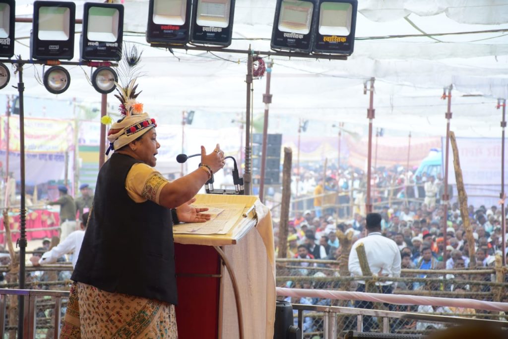 इस अवसर पर उन्होंने शहीद वीर नारायण सिंह जी के बलिदान एवं उनके योगदानों का स्मरण करते हुए उसे अतुलनीय बताया। उन्होंने कहा कि छत्तीसगढ़ के स्वाधीनता संग्राम का इतिहास जनजातीय नायको एवं वीर पुरुषों के बलिदानो से भरा पड़ा है। सुश्री उइके ने शहीद वीर नारायण सहित आदिवासी समाज के सभी महापुरुषों का पुण्य स्मरण करते हुए उन्हे सादर नमन किया। राज्यपाल ने उनके द्वारा जनजाति समाज के हितों के संरक्षण हेतु किये गए प्रयासों की भी जानकारी दी। कार्यक्रम स्थल मे पहुंचने के पश्चात राज्यपाल ने सर्वप्रथम देव स्थल मे पहुंचकर पूजा अर्चना की। कार्यक्रम स्थल मे पहुंचने पर परम्परागत आदिवासी नृत्यों एवं वाद्य यंत्रो के साथ राज्यपाल का भव्य तथा आत्मीय स्वागत किया गया। इस अवसर पर राज्यपाल ने गोंड समाज युवक युवति परिचय सम्मेलन पुस्तक का भी विमोचन किया। कार्यक्रम को पूर्व केंद्रीय मंत्री अरविन्द नेताम ने भी सम्बोधित किया। इस अवसर पर स्वागत भाषण आयोजन समिति के अध्यक्ष मानक दरपट्टी ने प्रस्तुत करते हुए समाज की मांगो की ओर राज्यपाल का ध्यान आकृष्ट कराया। कार्यक्रम मे कलेक्टर कुलदीप शर्मा, पुलिस अधीक्षक जीतेन्द्र कुमार यादव , सेनानी छत्तीसगढ़ सशस्त्र बल डी आर अचला, सी ई ओ जिला पंचायत डॉ रेणुका श्रीवास्तव सहित अन्य अधिकारियो के अलावा सामजिक प्रतिनिधि एवं विशाल संख्या मे आदिवासी समाज के लोग उपस्थित थे।