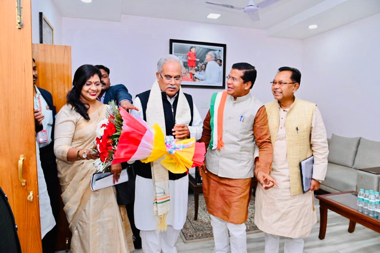 बालोद। मुख्यमंत्री भूपेश बघेल के नेतृत्व में कांग्रेस सरकार को छत्तीसगढ़ में 4 साल पूरे होने पर संजारी बालोद विधानसभा क्षेत्र की विधायक संगीता सिन्हा ने उनसे प्रत्यक्ष मुलाकात कर इस सफलता के लिए बधाई दी।छत्तीसगढ़ में कांग्रेस सरकार के 17 दिसंबर को चार साल पूरे हुए हैं। इस दिन को सरकार की ओर से छत्तीसगढ़ गौरव दिवस के रूप में मनाया गया। इस दिन सभी गौठानों, सहकारी सोसायटी परिसरों, धान खरीदी केंद्रों, तेंदुपत्ता संग्रहण केंद्रों, वनोपज प्रबंधन समितियों, हाट-बाजारों और नगरीय क्षेत्र के वार्डों में कार्यक्रम हुए। विधायक ने कहा कि आयोजन से लोगों में कांग्रेस की योजनाओं के प्रति विश्वास जगा और लोगों को योजनाओं का लाभ मिला।