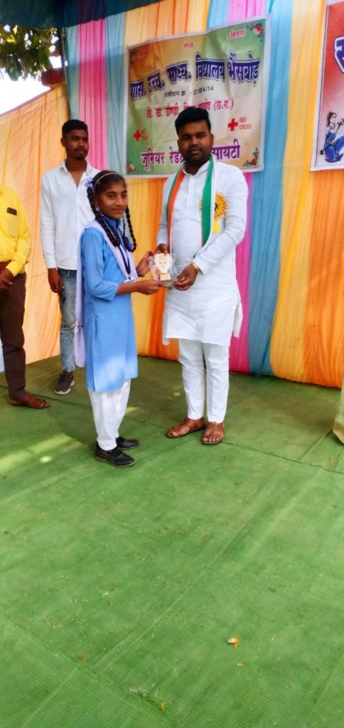 पिता,गुरुजन,शाला व ग्राम का नाम गौरवान्वित हो ,शिक्षा के साथ साथ शारीरिक रूप से स्वस्थ रहने के लिए खेलकूद भी जरूरी है ,खेलकूद में बढ़चढ़ कर सहभागिता दर्ज कराने की बात कही ,शिक्षा व खेल के छेत्र में उत्कृष्ट प्रदर्शन कर पुरस्कृत होने वाले छात्र-छात्राओं को बधाई देते हुए शाला के सभी बच्चों के उज्ज्वल भविष्य की कामना की ,इस अवसर पर टिकेंद्री बाई ठाकुर सरपंच ग्राम पंचायत भैसबोड,माधवी ठाकुर अध्यक्ष शाला प्रबंधन समिति ,भूषण देवांगन उपसरपंच ,शाला के प्राचार्य,शिक्षक शिक्षिकाएं ,ग्रामीणजन व छात्र -छात्राये उपस्थित थे।