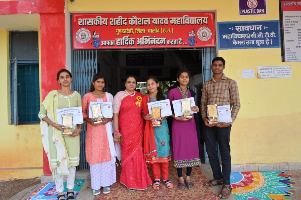 गुण्डरदेही।शासकीय शहीद कौशल यादव महाविद्यालय, गुण्डरदेही के वार्षिक स्नेह सम्मेलन एवं पुरस्कार वितरण समारोह में मुख्य अतिथि श्री कुंवर सिंह निषाद, विधायक, गुण्डरदेही विभानसभा क्षेत्र एवं संसदीय सचिव (छ.ग.शासन) ने विश्वविद्यालयीन परीक्षा के प्रावीण्य सूची में प्रथम स्थान प्राप्त कु. दीपमाला एवं टॉप 10 में स्थान पाए 6 छात्र-छात्राओं को सिल्वर मेडल एवं प्रमाण पत्र देकर सम्मानित किया।