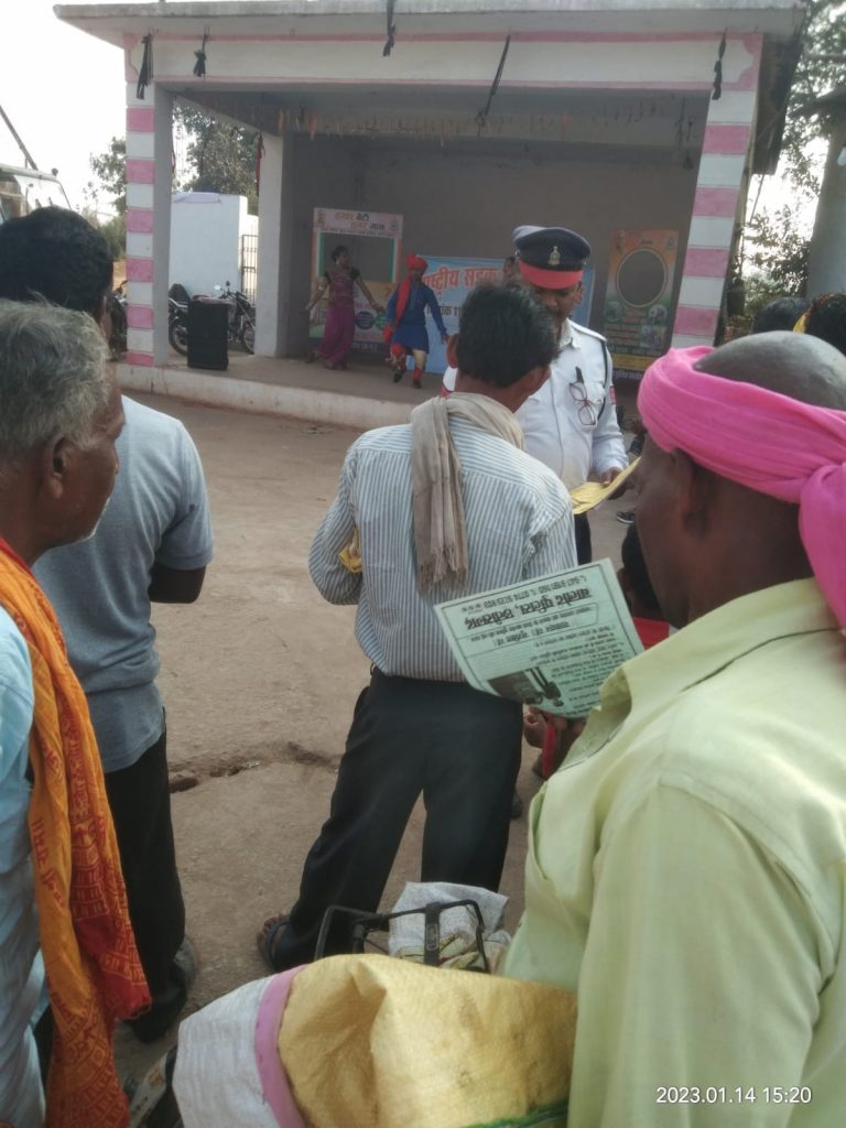 33 वां राष्ट्रीय सड़क सुरक्षा सप्ताह के चर्तुथ दिवस डौण्डी के साप्ताहिक बाजार में नुक्कड नाटक के माध्यम से आम जनों के बताया गया सड़क सुरक्षा के नियम