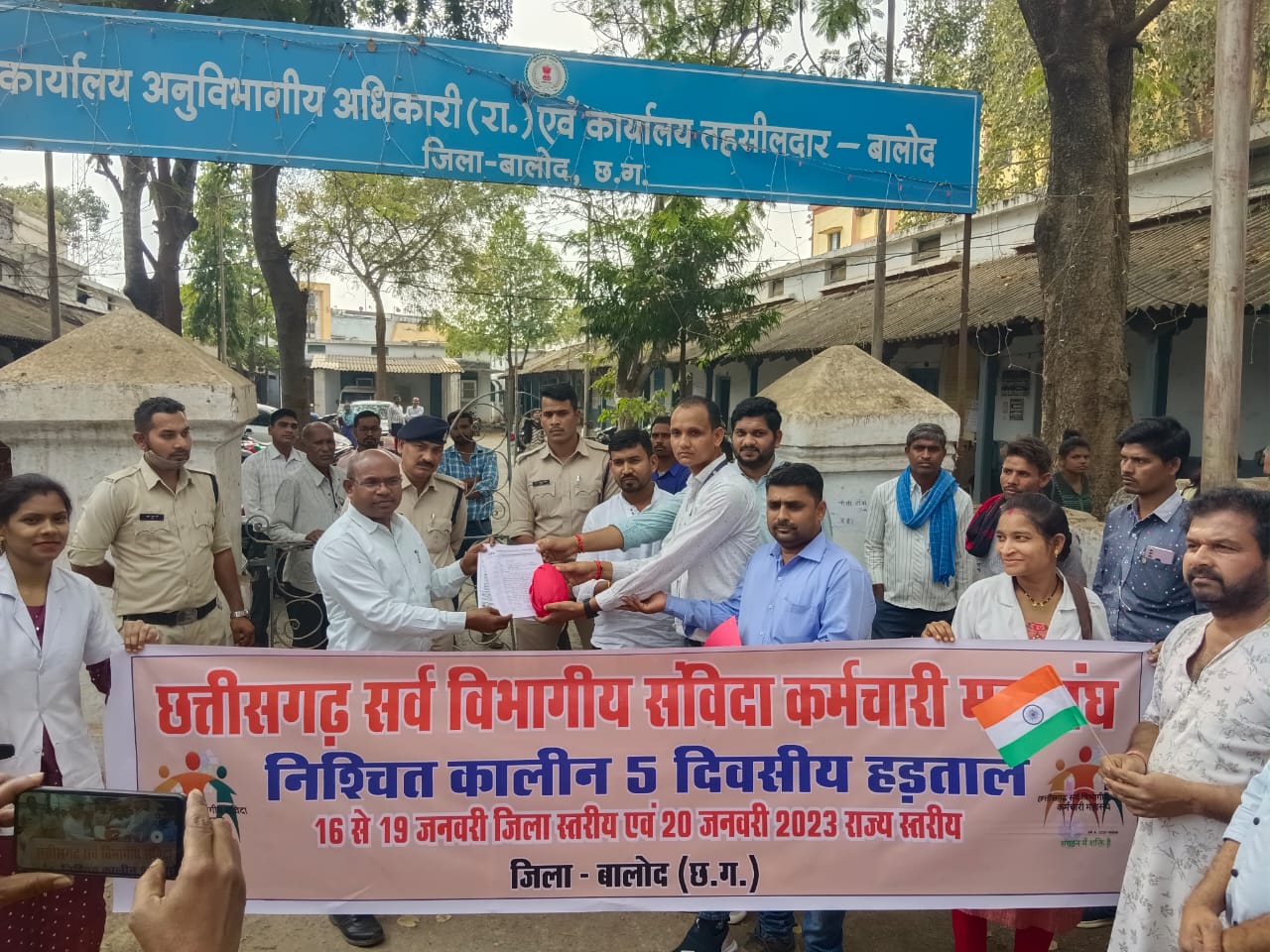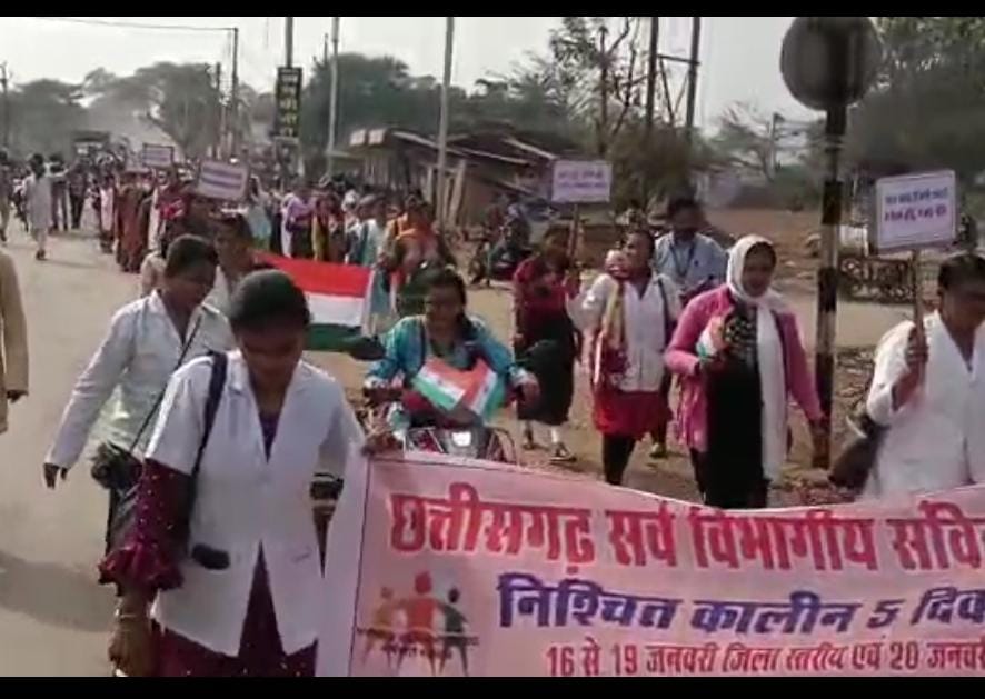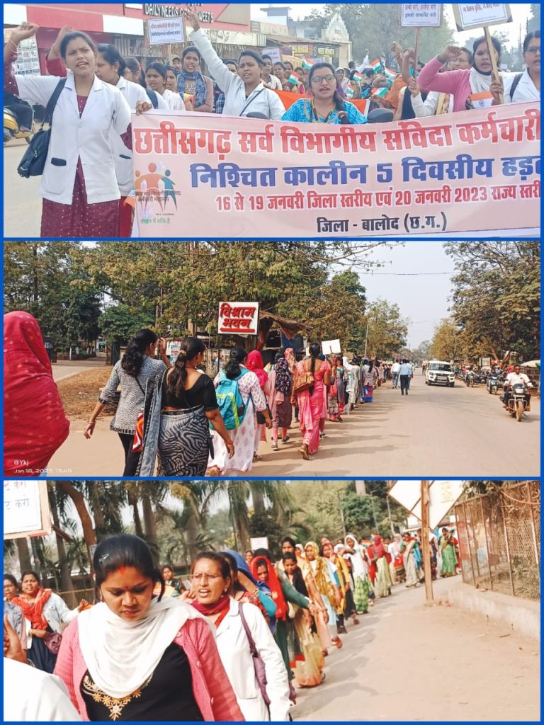 निश्चितकालीन आंदोलन के तृतीय दिवस राज्य के सभी जिलों में धरना प्रदर्शन लगातार आयोजित किया जा रहे हैं । तृतीय दिवस सैकड़ों की संख्या में संविदा कर्मचारियों ने रैली निकाली और पोस्ट ऑफिस में जाकर श्रीफल (नारियल) को पोस्ट किया गया। अवगत हो कि, विगत 4 वर्षों से संविदा कर्मचारी घोषणापत्र के नियमितीकरण के वादे के संबंध में लगातार धरना प्रदर्शन कर रहे हैं और प्रत्येक दिवस अलग-अलग आयोजनों के माध्यम से सरकार का ध्यान आकृष्ट करना चाह रहे हैं । संविदा कर्मचारियों द्वारा रैली निकालकर मुख्यमंत्री जी के नाम का ज्ञापन तहसीलदार को सौंपा गया ।